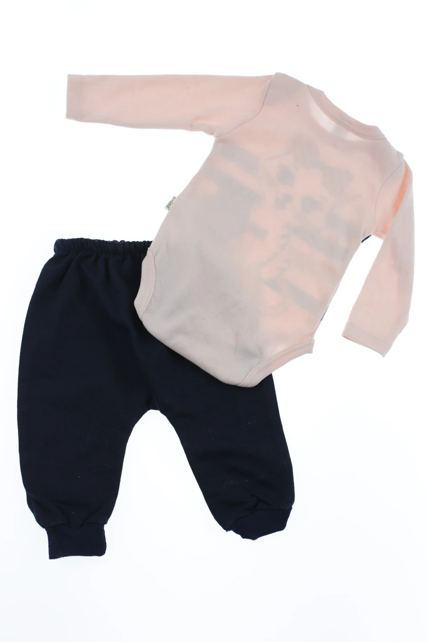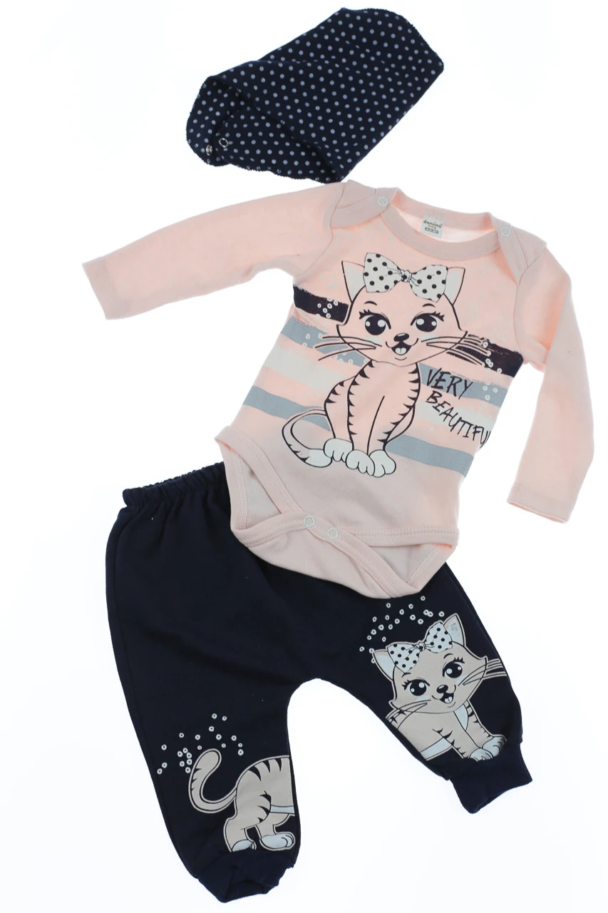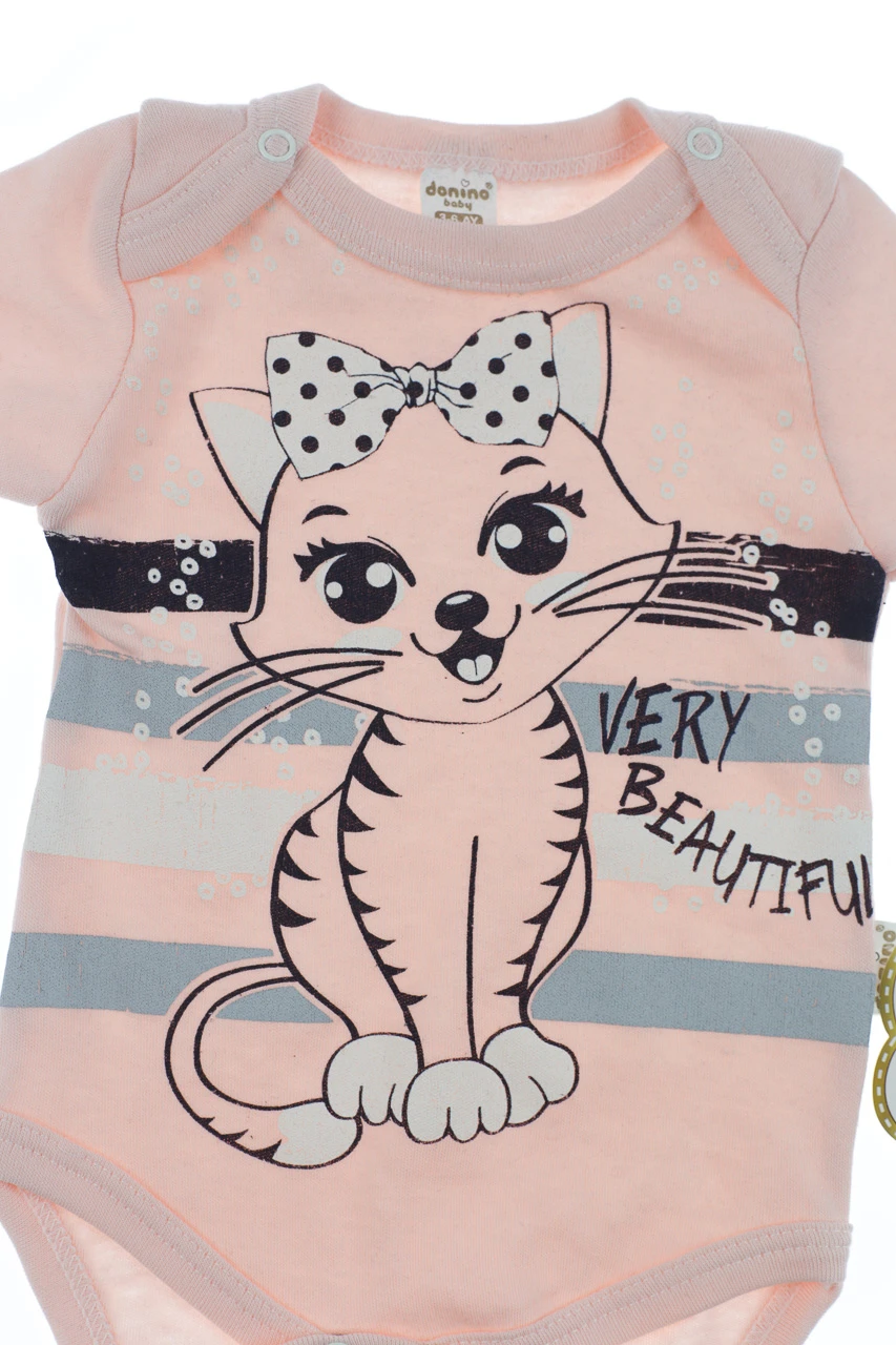 - Боді зі штанами та хомутом для дівчинки інтерлок Cat персикове