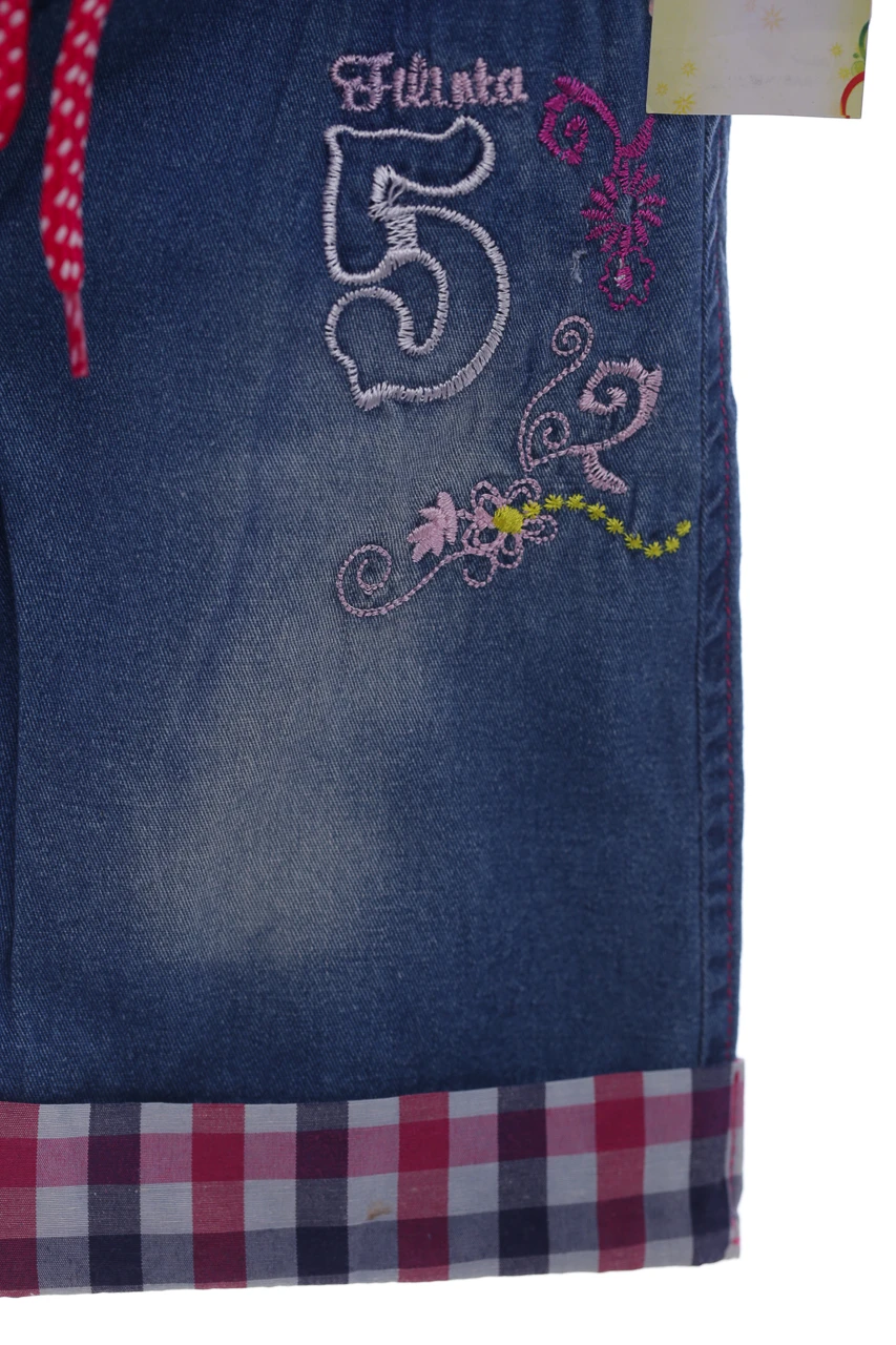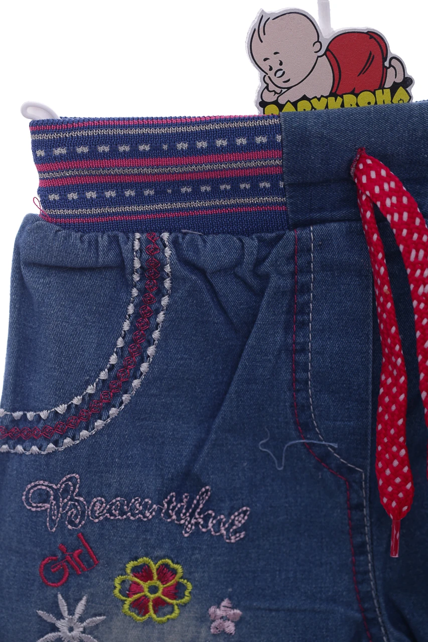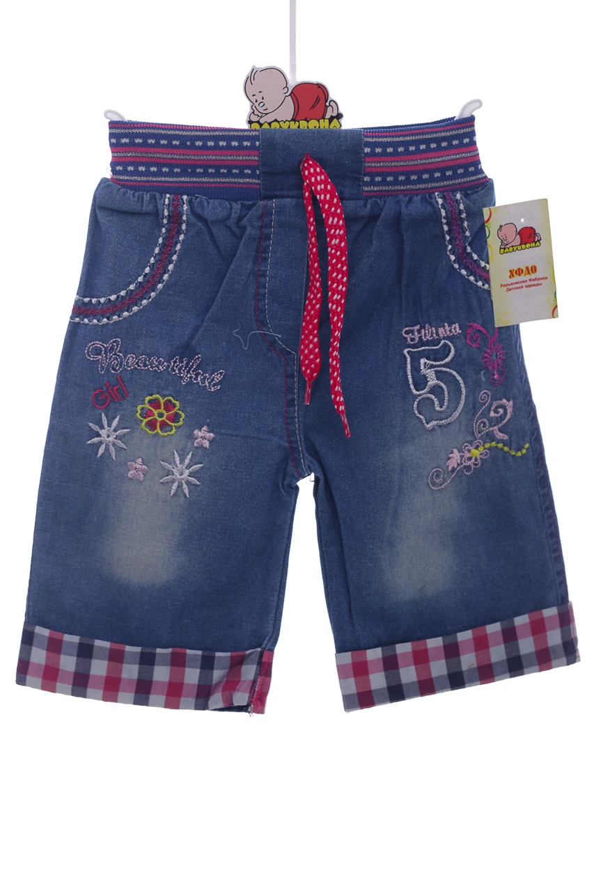 Джинсові бриджі на широкій резинці для дівчинки. Вишиті милим принтом. Цікавий декор та легка тканина буде чудовою ідеєю на літо