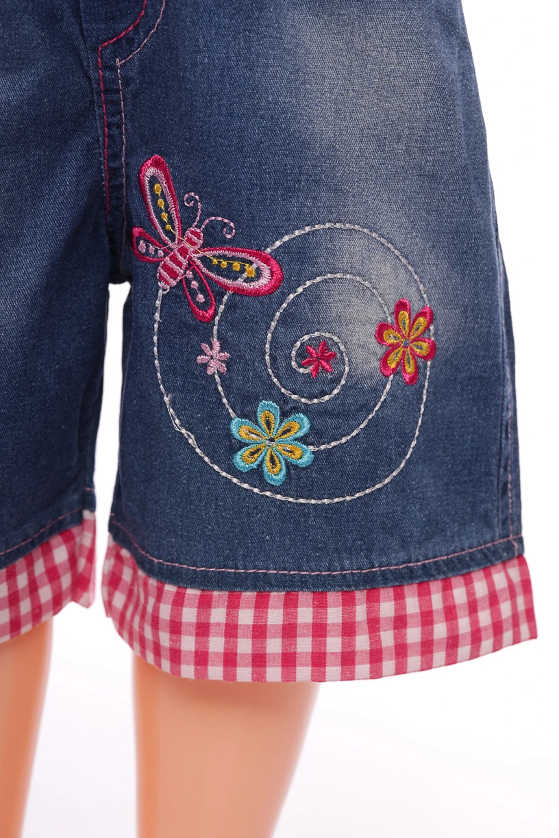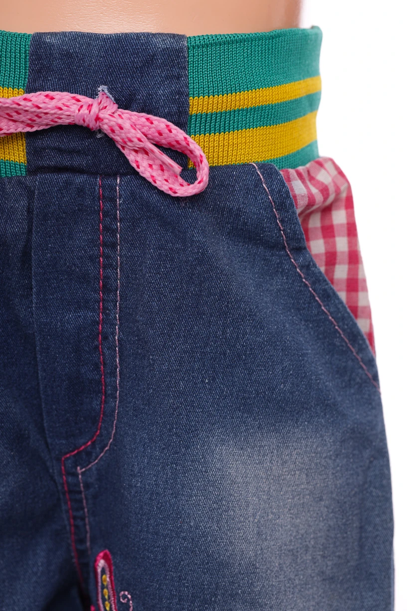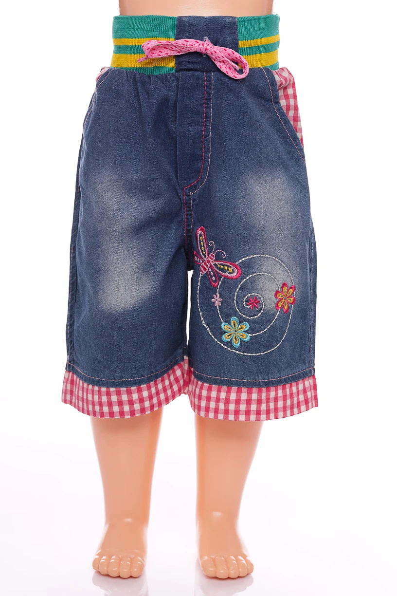 Джинсові бриджі на широкій резинці для дівчинки. Вишиті милим принтом. Цікавий декор та легка тканина буде чудовою ідеєю на літо