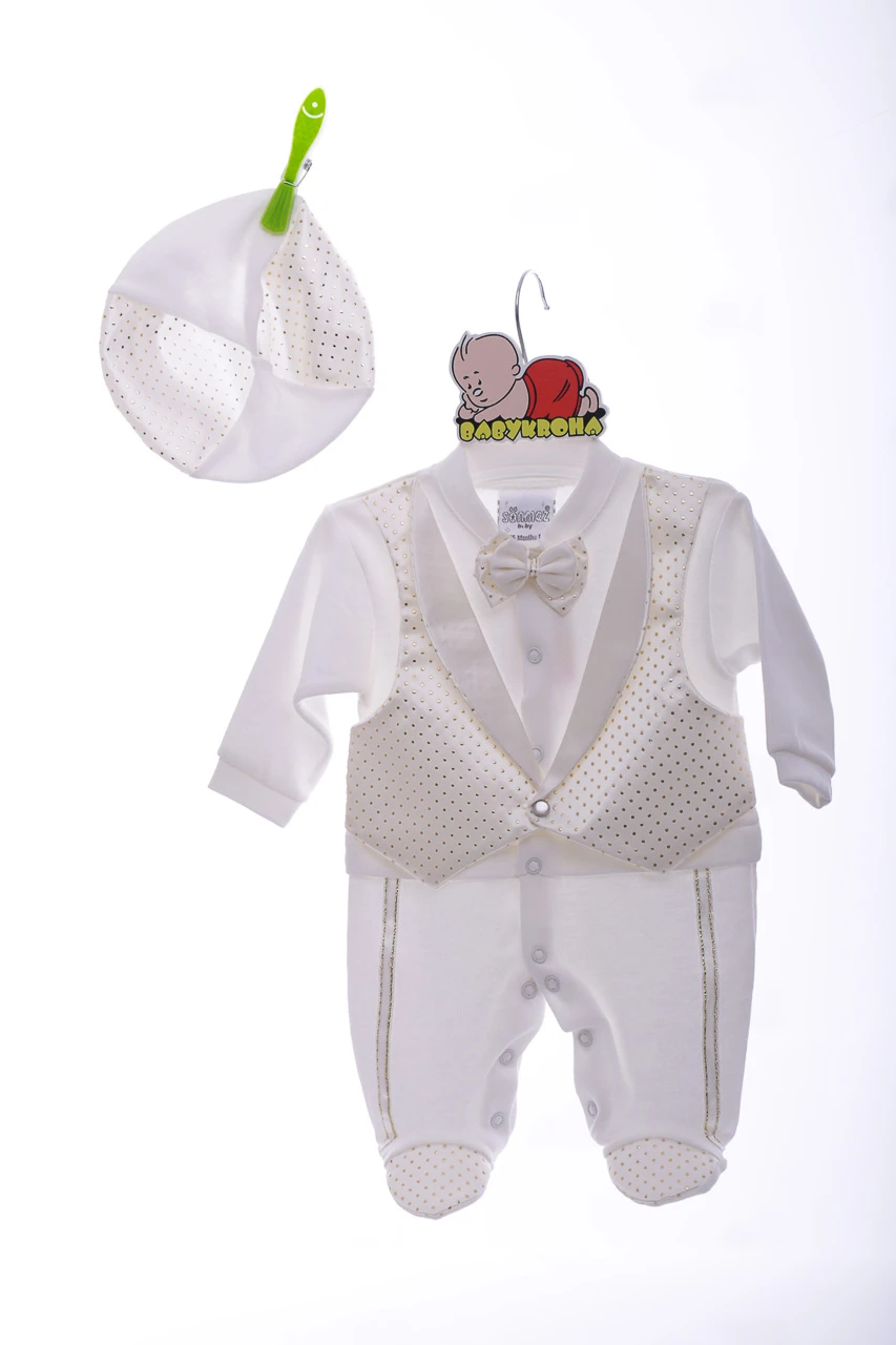 - Чоловічок з шапкою для хлопчика трикотажний Ошатний бежевий