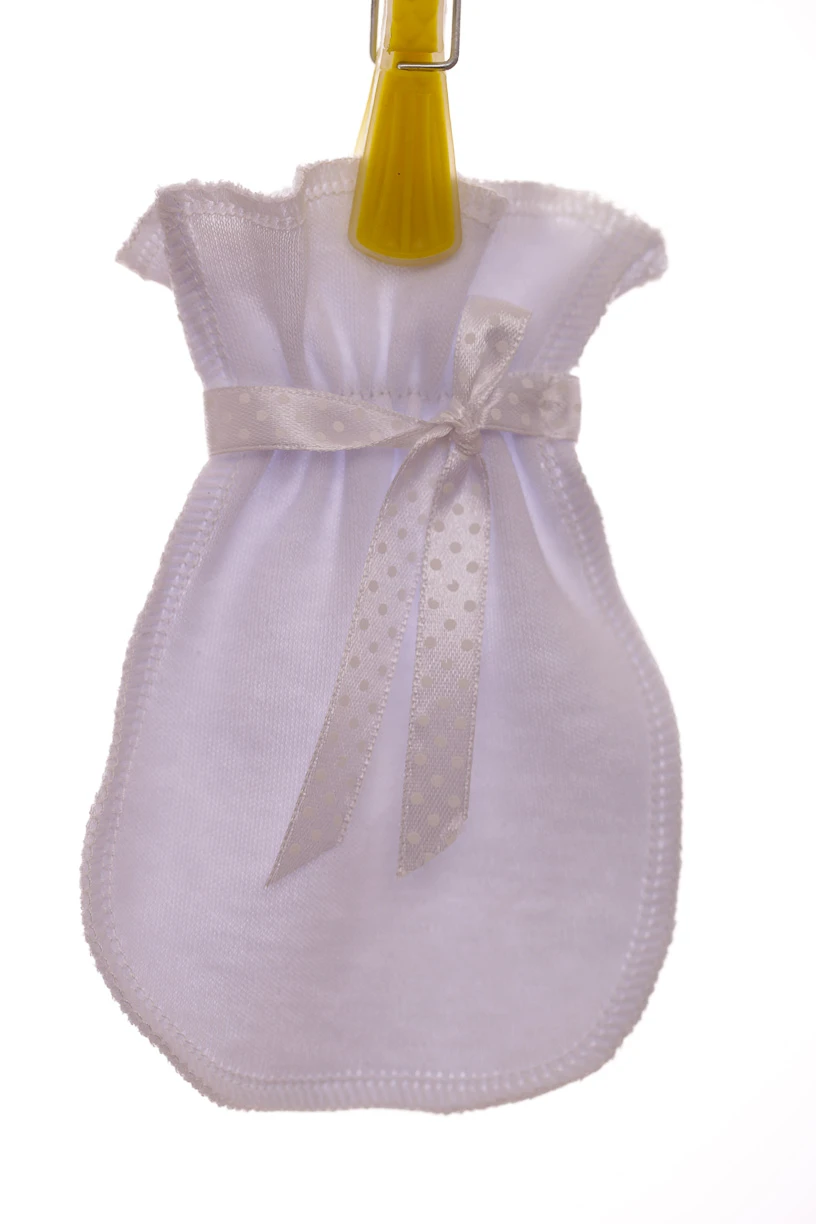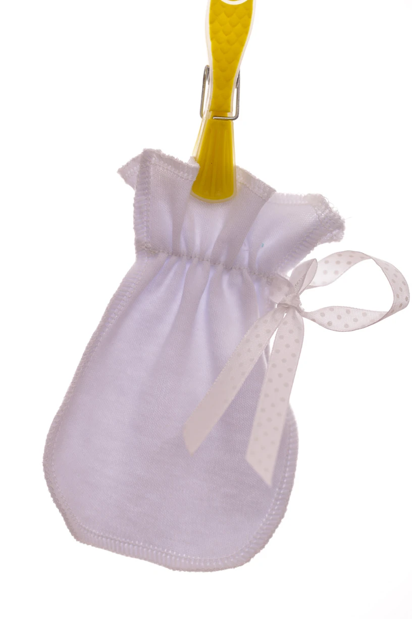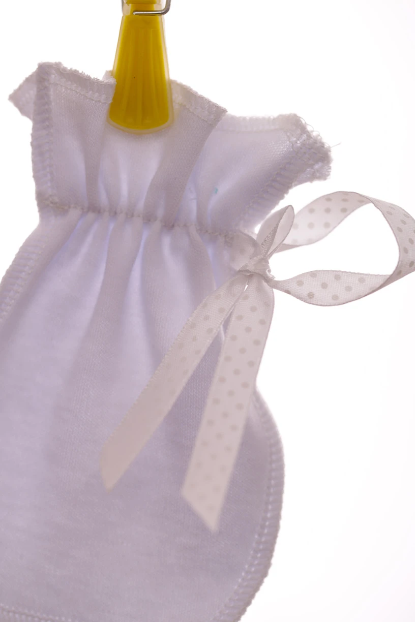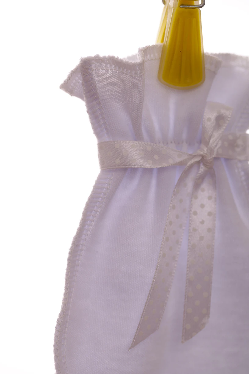 Мішечок для волосся крісетильний. Виконаний із бавовняної тканини із зовнішнім швом. Зав'язується атласною стрічкою, і прилаштований гумочкою. Незамінний аксесуар на хрестини малюка.