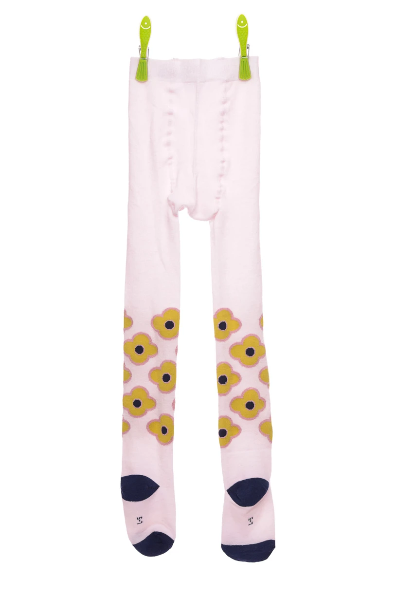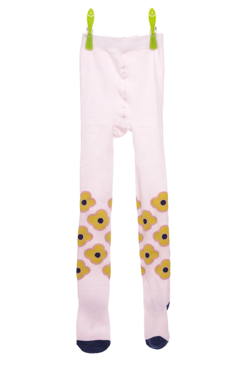 - Колготи для дівчинки бавовняні світло-рожеві з квітами