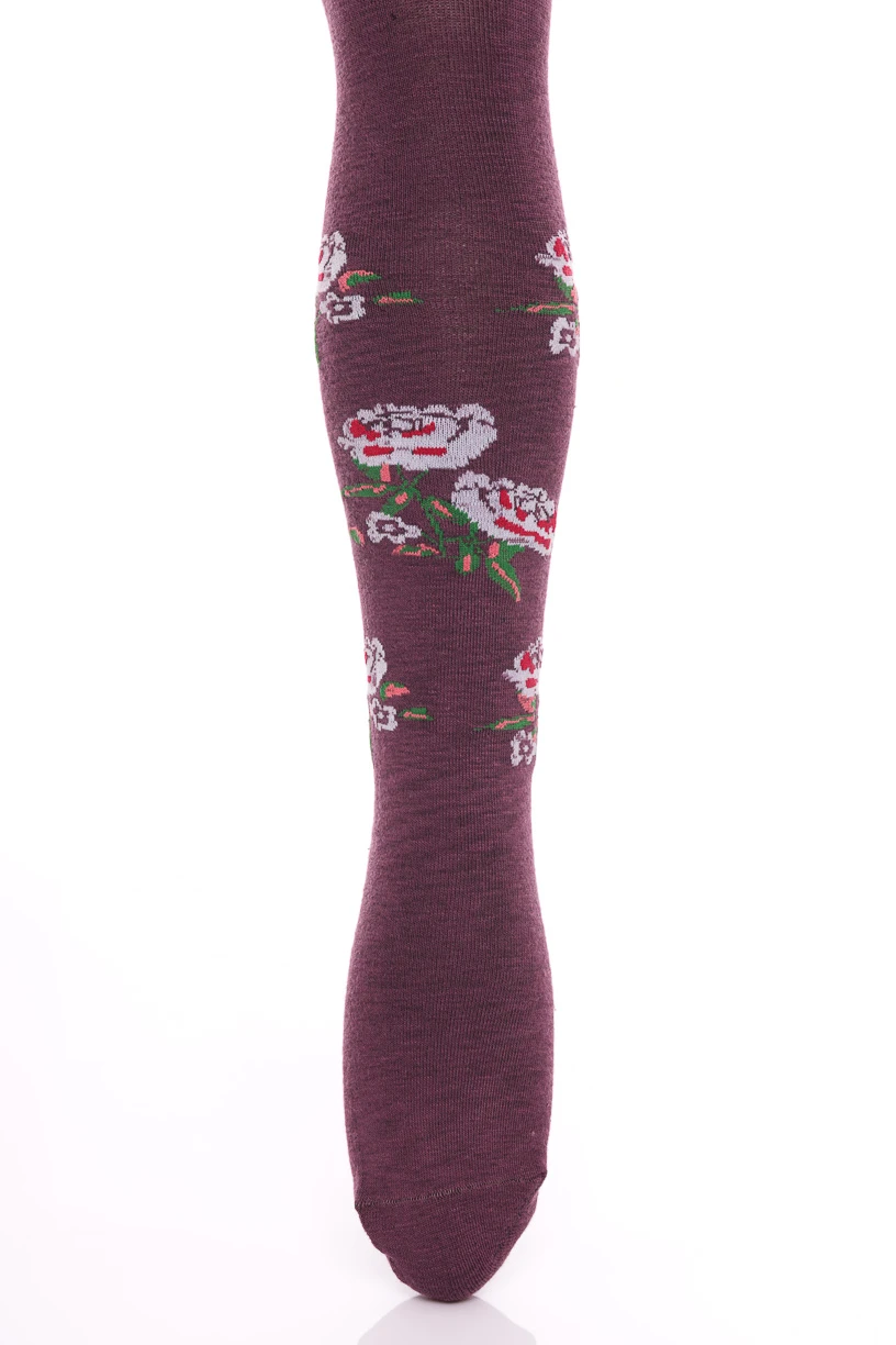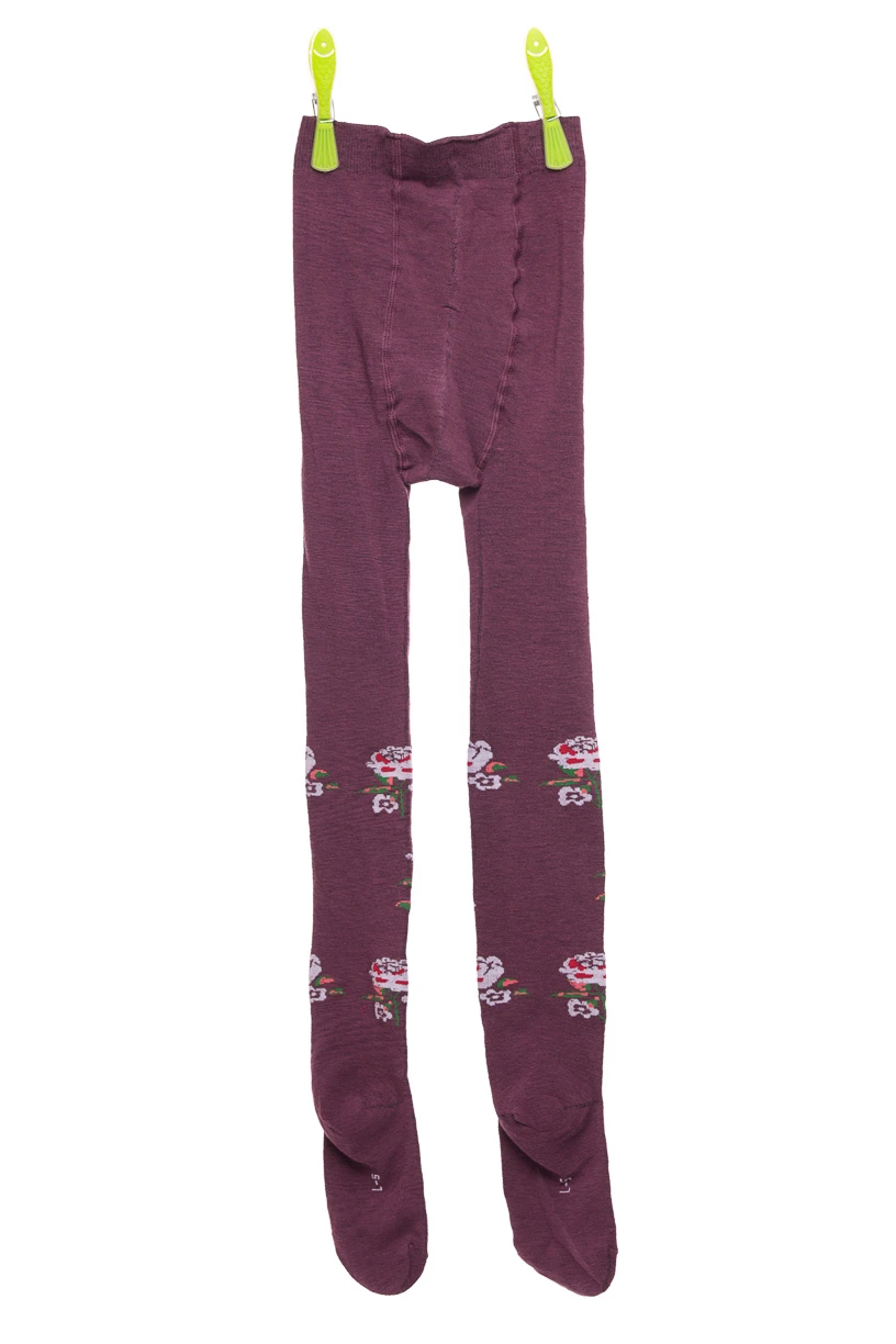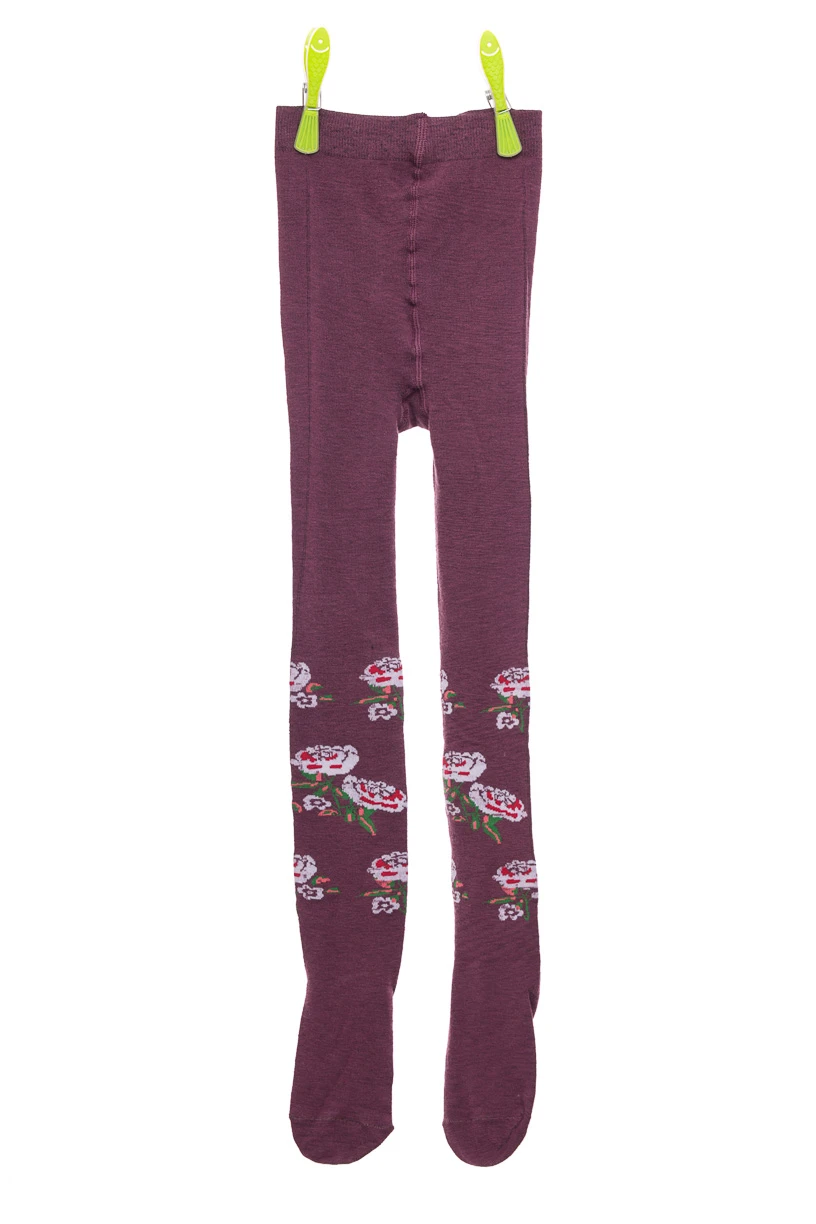 - Колготи для дівчинки бордові з трояндами.