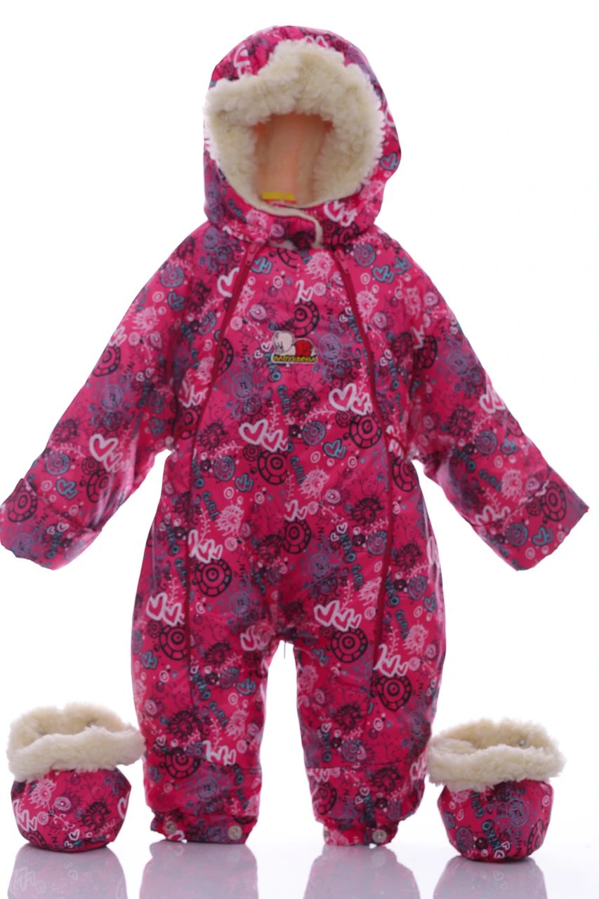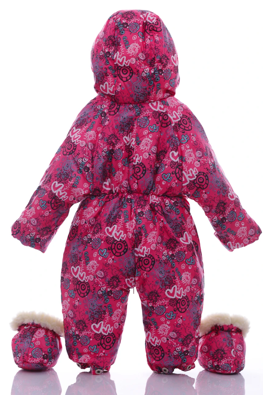 - Комбінезон для дівчинки Трансформер на хутрі Babykroha з принтом Сердечок малиновий