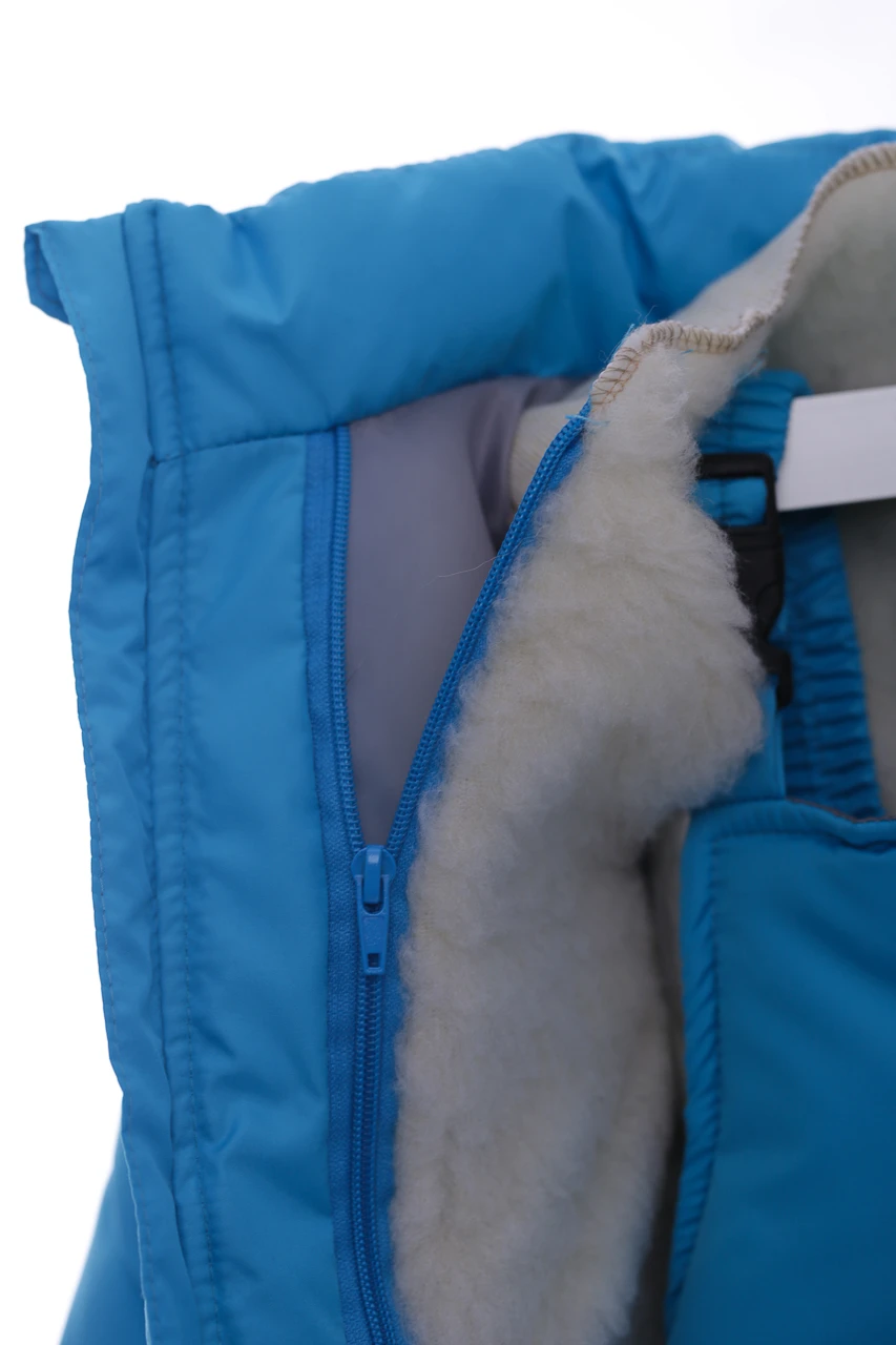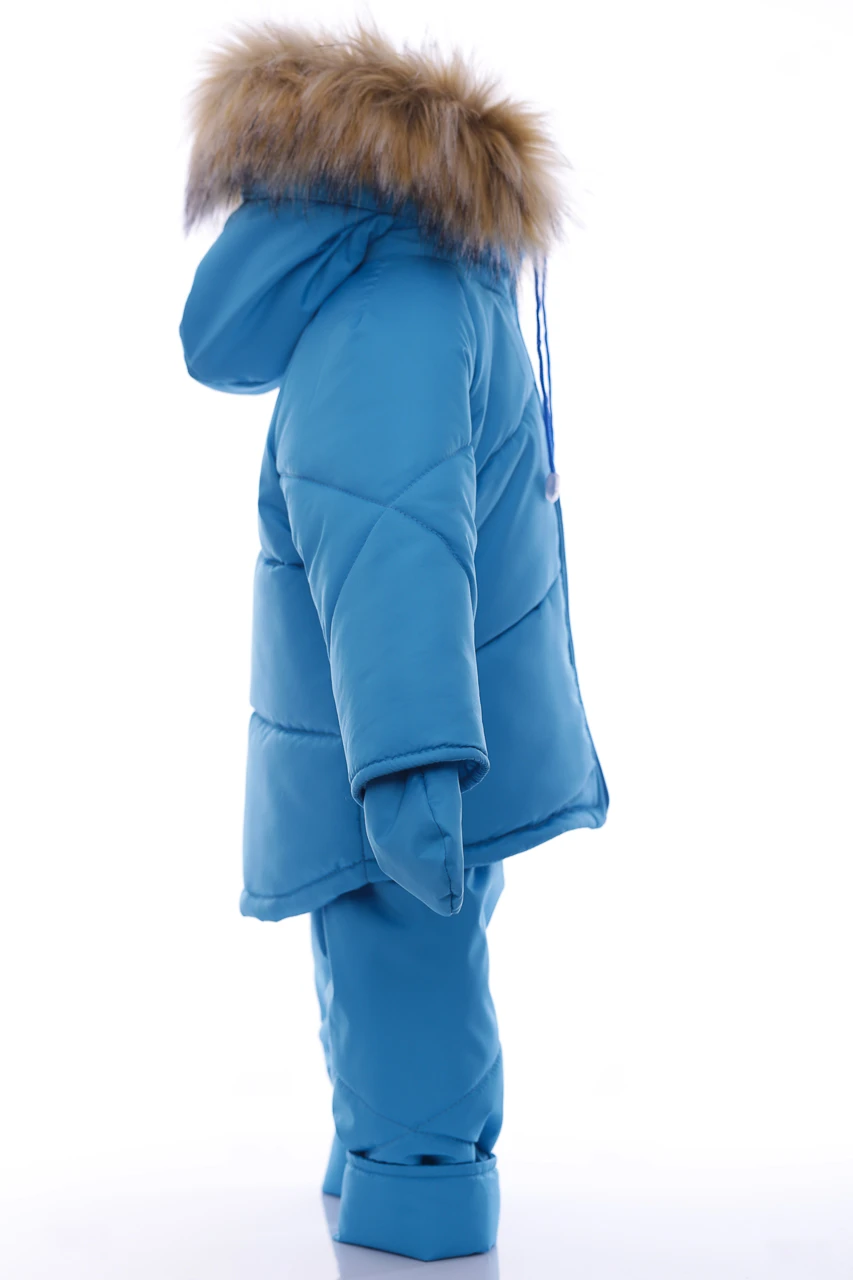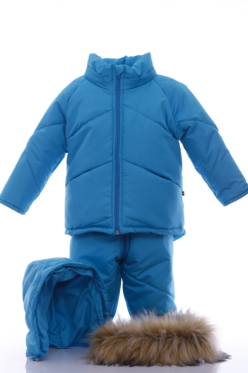 Зимовий комбінезон для хлопчика Зручний комплект, що складається з куртки та напівкомбінезону, які можна носити як разом, так і окремо. Легкий, теплий і комфортний напівкомбінезон на регульованих бретелях. Штанина з відворотом, що дозволяє регулювати довжину, підлаштовуючись під зростання дитини. Комбінезон не сковує руху, зручний і практичний у носінні. Капюшон і узлісся відстібаються, що робить прання зручним. Верх напівкомбінезону та курточки виконаний з плащівки. Наповнення куртки: холофайбер, який витримує мороз до -20 градусів. Усередині хутряна підкладка. Куртка прикрашена галявиною з натурального хутра, у наборі йдуть рукавички в тон комплекту.