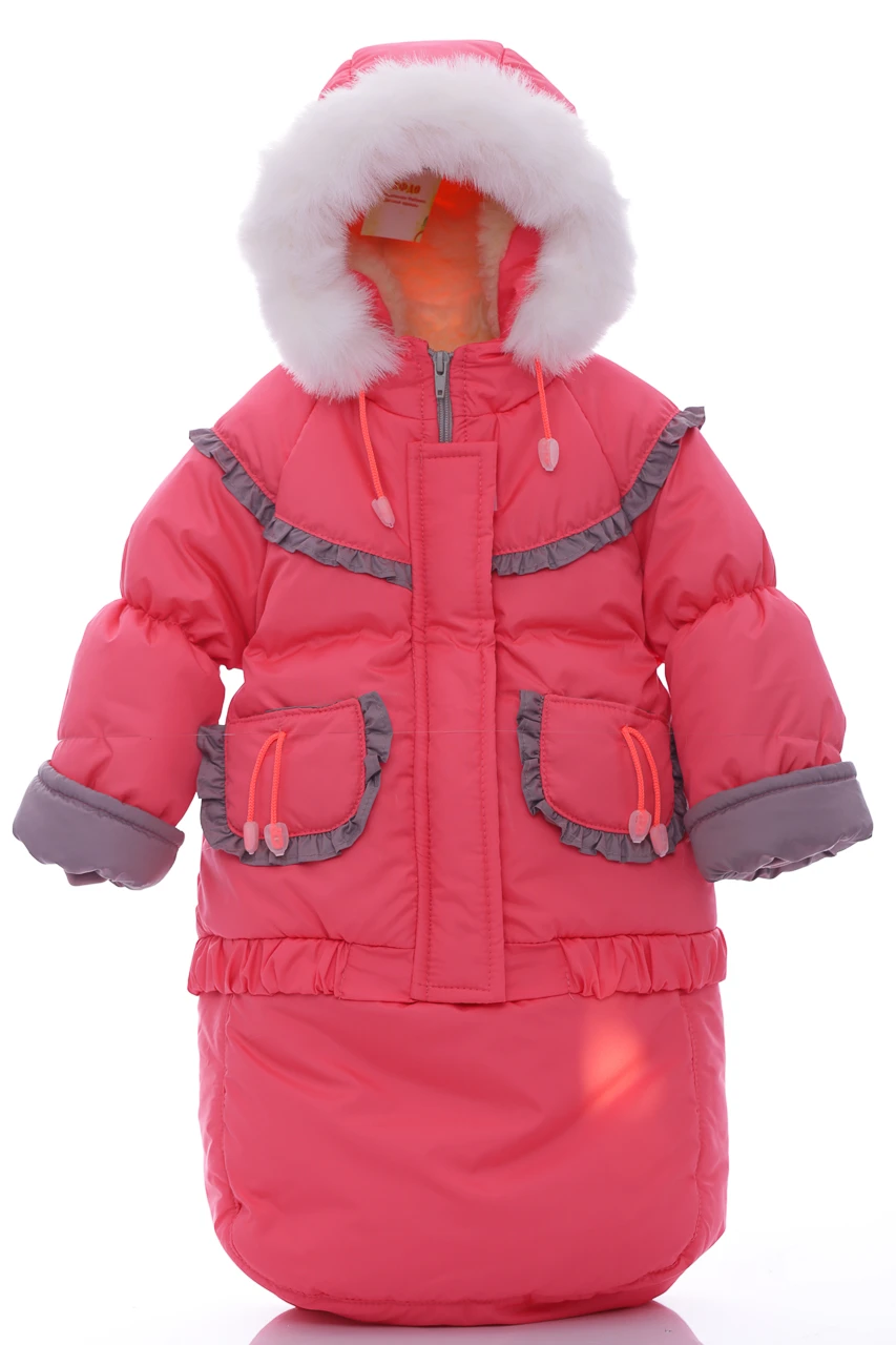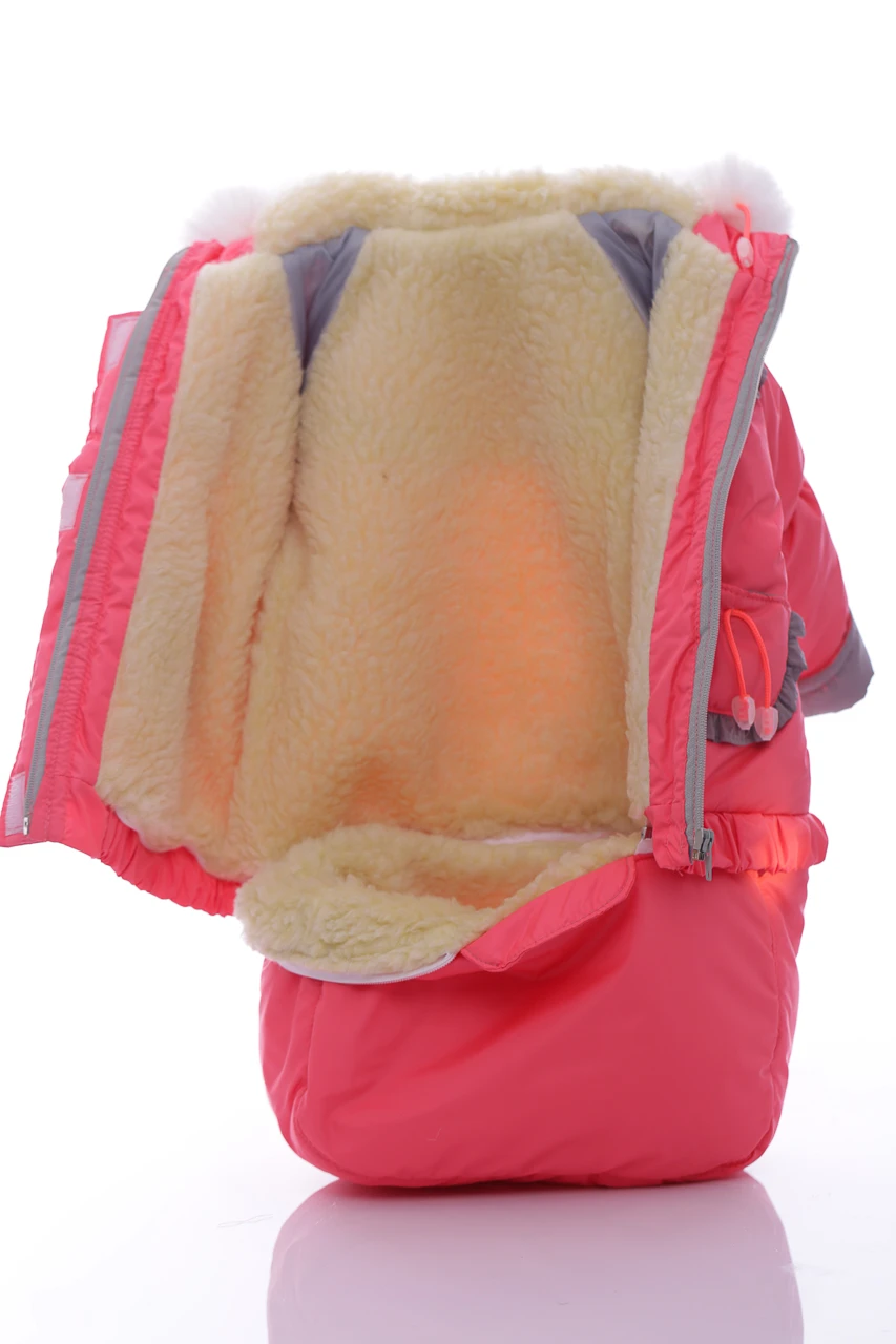 - Комбінезон Конверт для дівчинки на хутрі Babykroha Трійка світло-кораловий