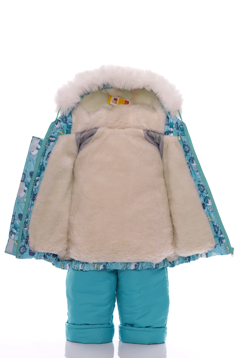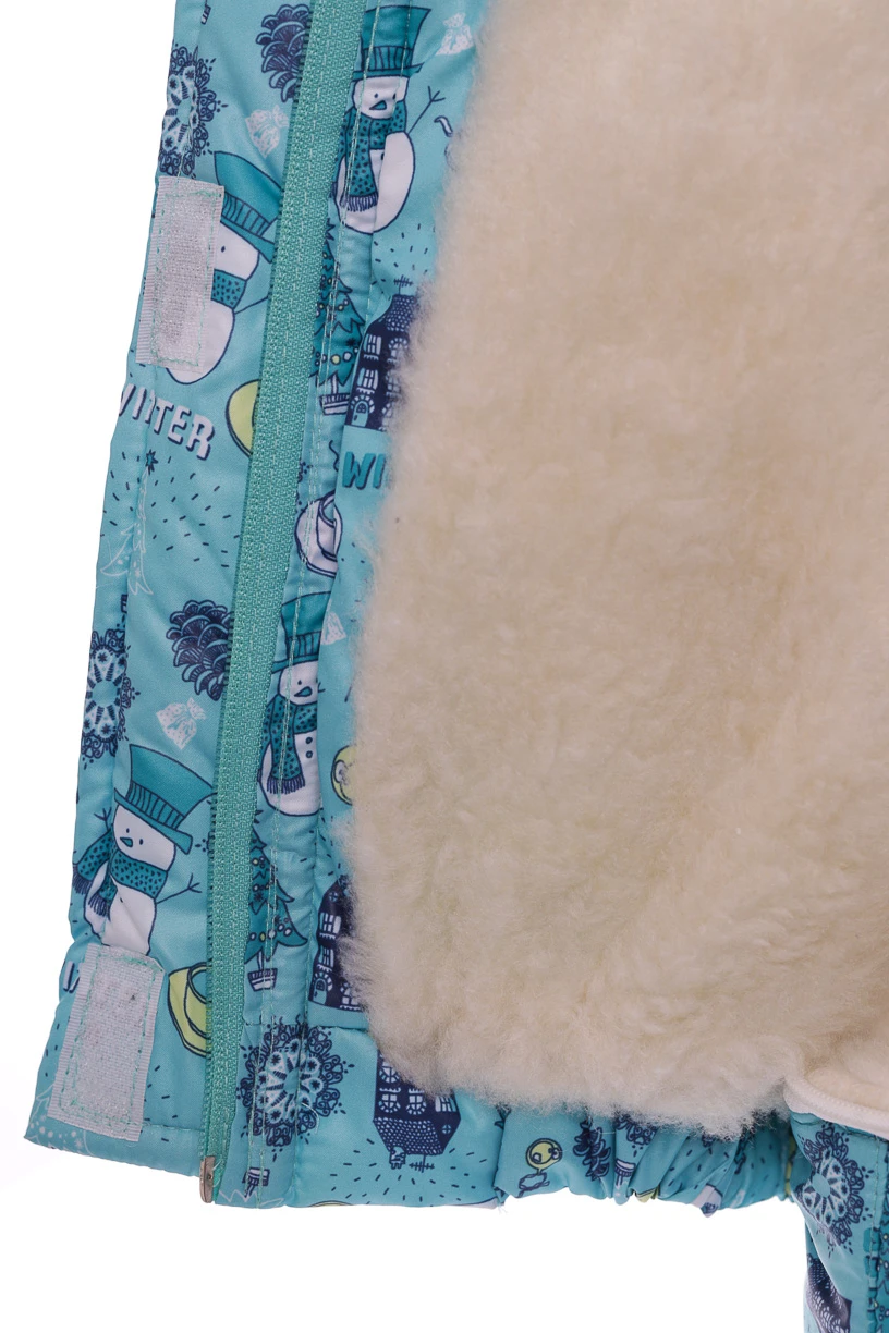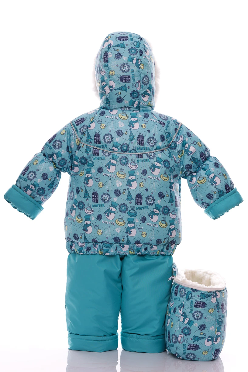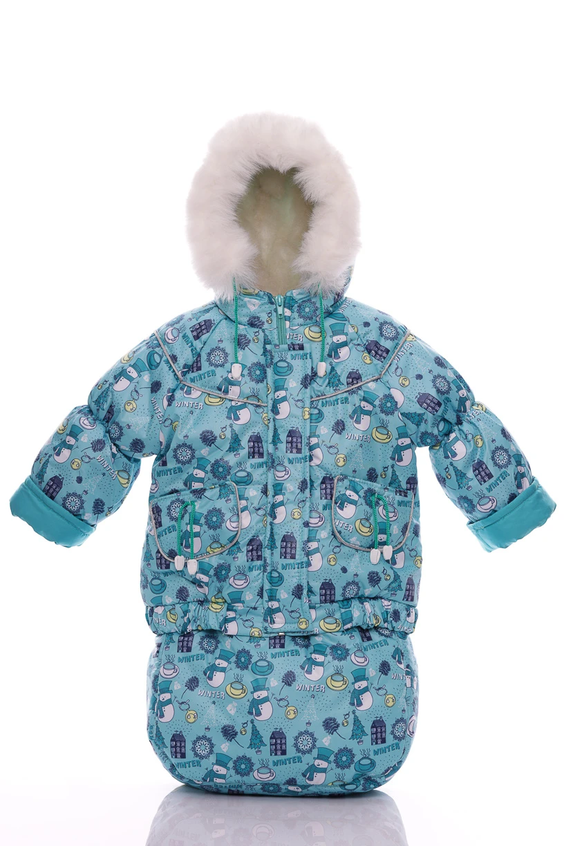 - Комбінезон Конверт для хлопчика на хутрі Babykroha з принтом Сніговічків Трійка м'ятний