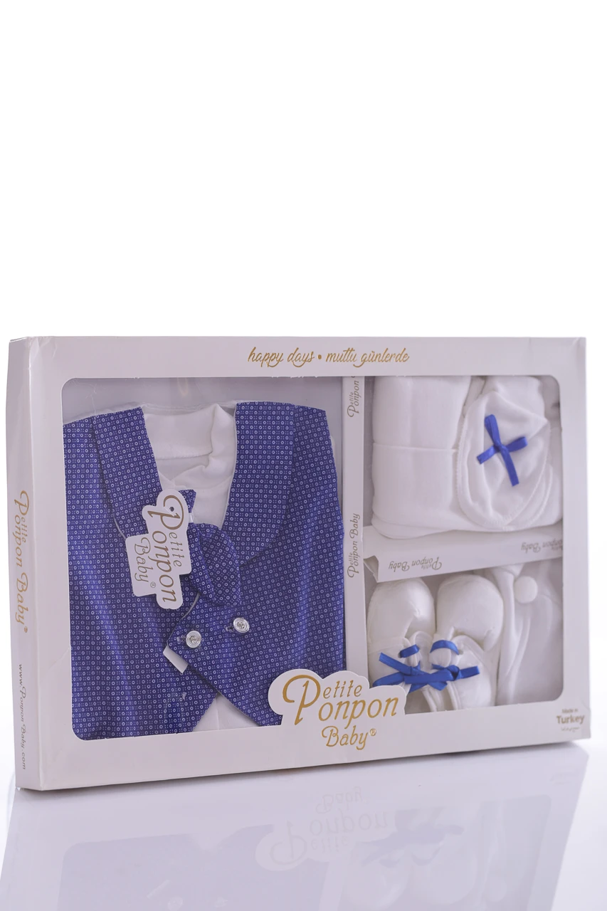Набір в коробці для хлопчика. У набір входить: трикотажна сорочечка з метеликом, штани, жилет, шапочка, подряпини та пінетки. Відмінний варіант на подарунок близьким, у яких є дітки