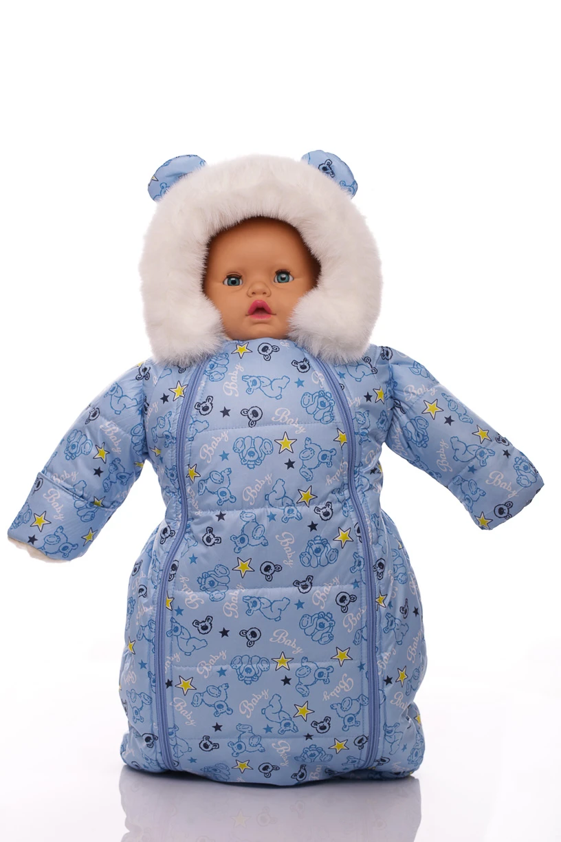 - Конверт на хутро для хлопчика Babykroha з принтом бебиків блакитний