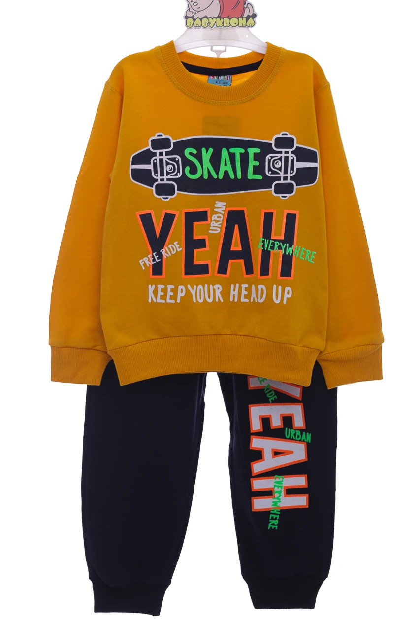 - Костюм для хлопчика трикотажний зі скейтом жовтий