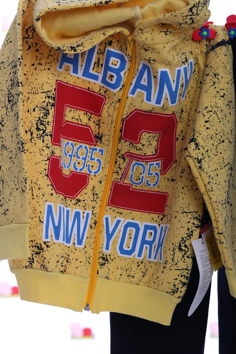 Дитячий костюм складається з штанів і толстовки з капюшоном.