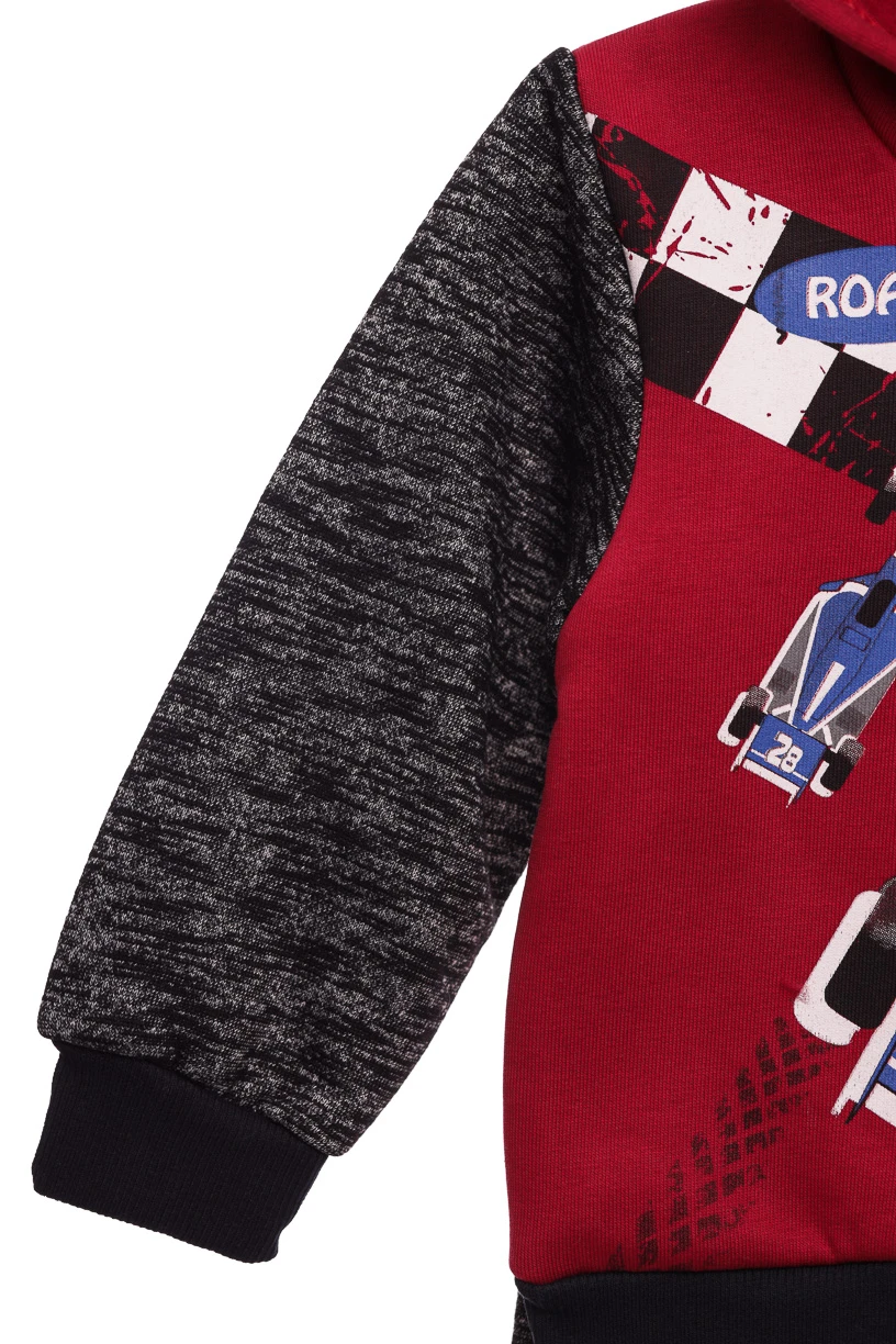 Костюм для хлопчика на флісі складається зі світшота та штанів. На рукавах та штанинах манжети. Кельма з капюшоном. Можна носити костюмом, можна окремо.
