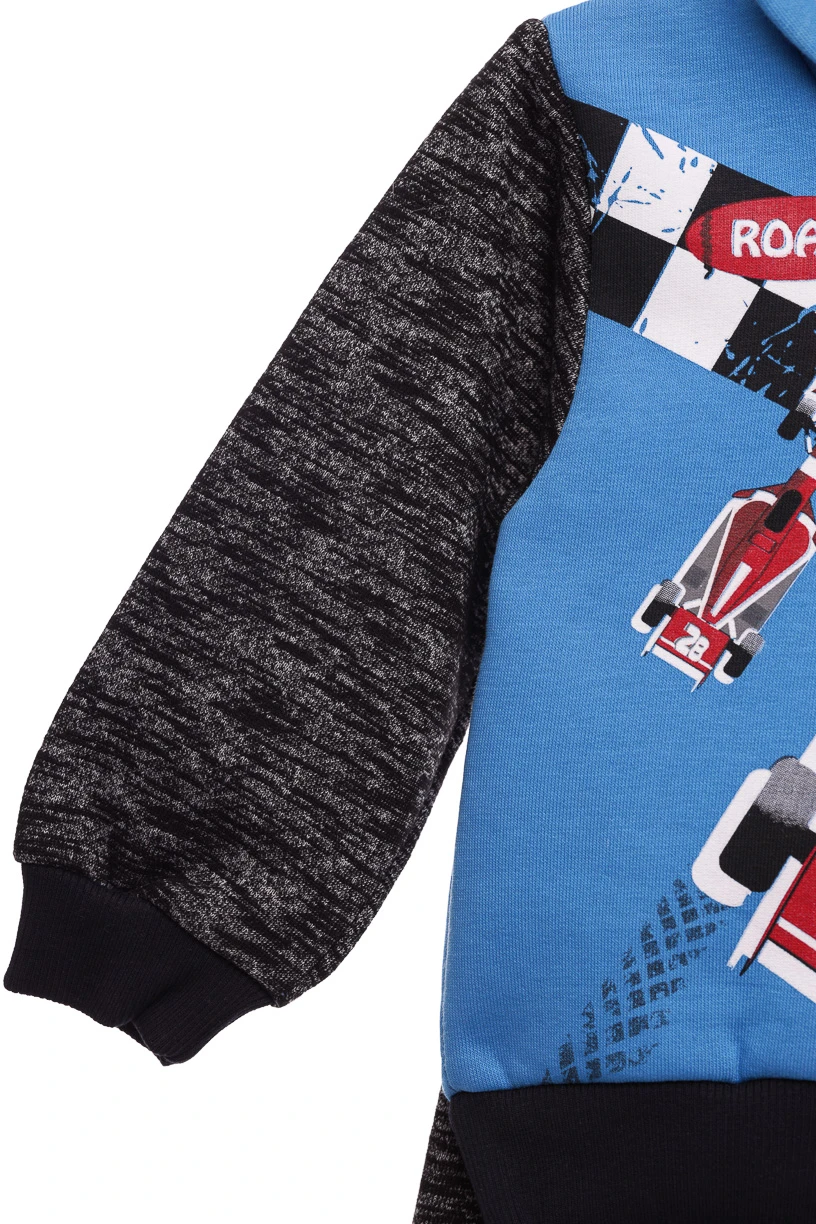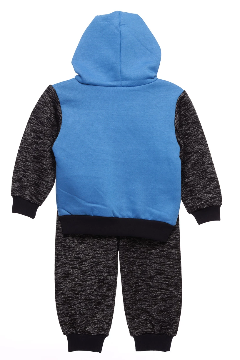 Костюм для хлопчика на флісі складається зі світшота та штанів. На рукавах та штанинах манжети. Кельма з капюшоном. Можна носити костюмом, можна окремо.