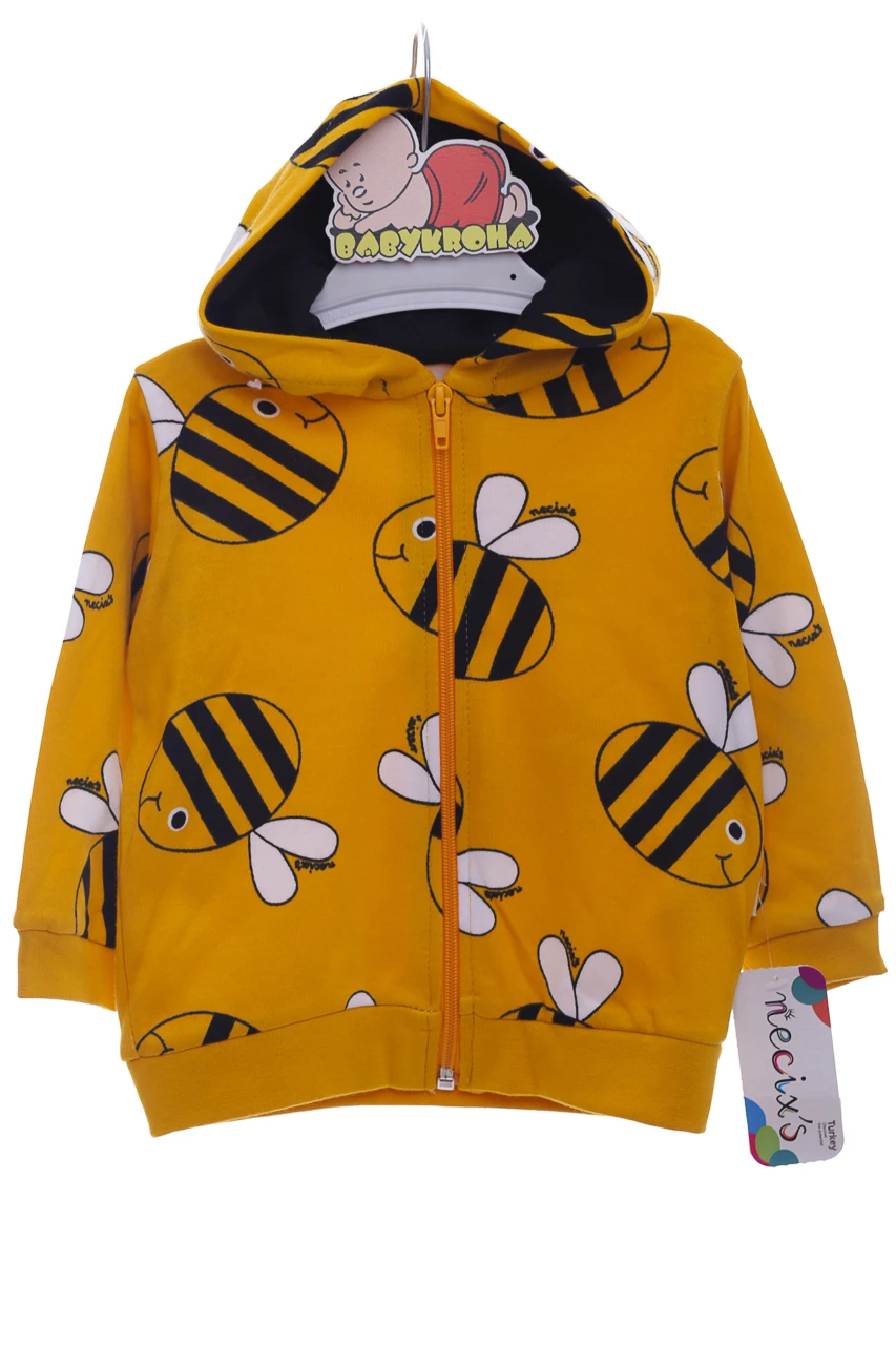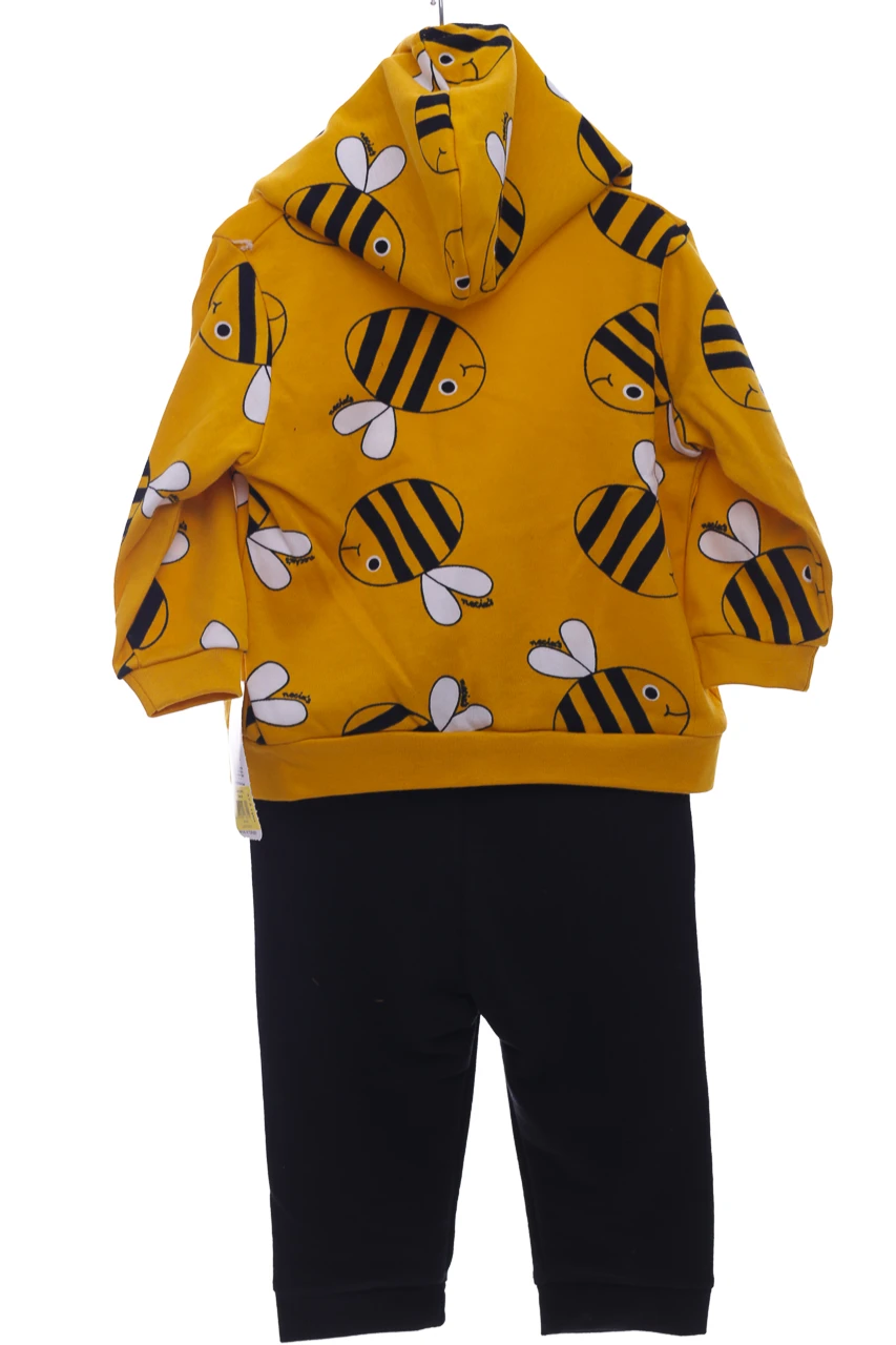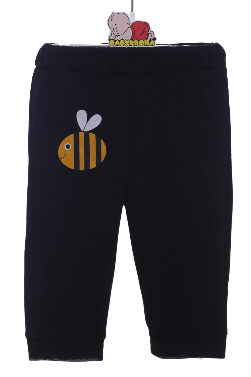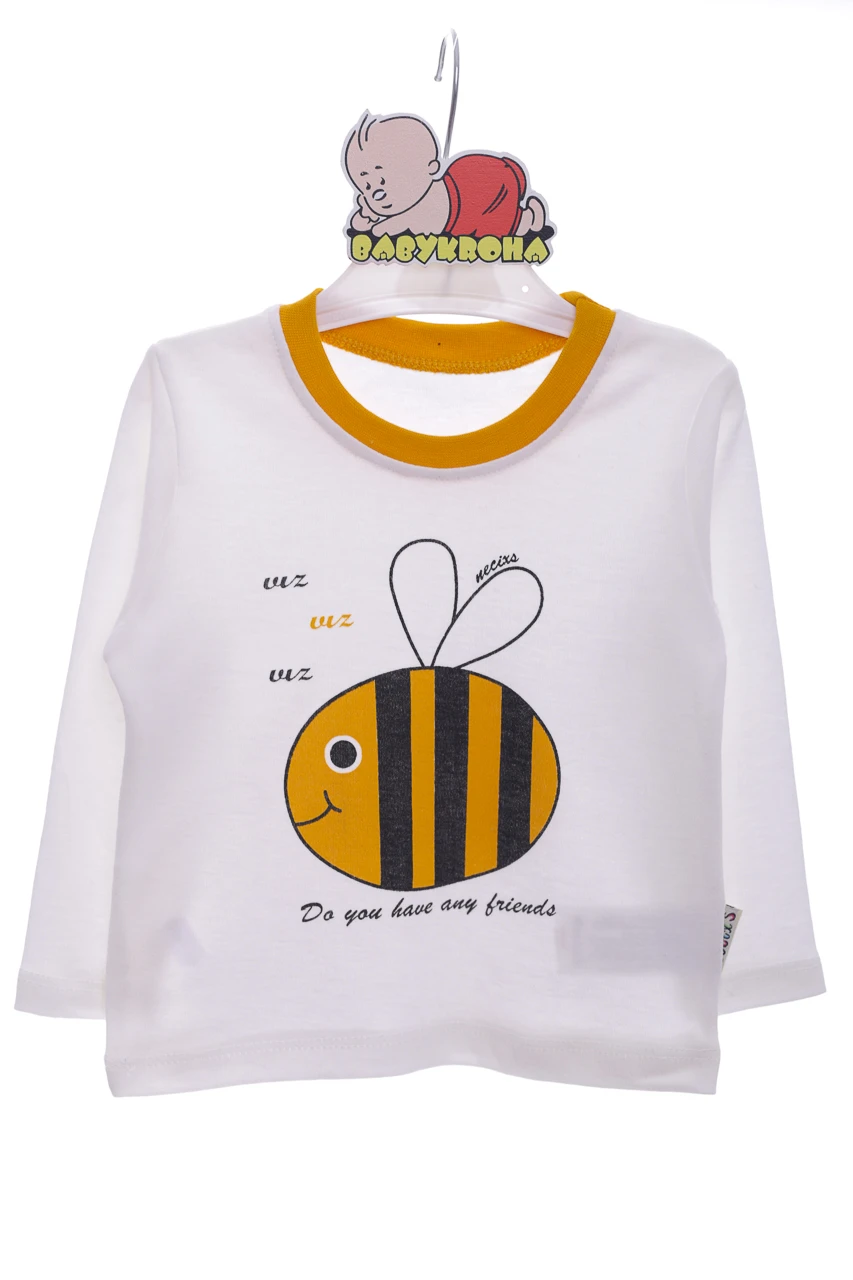Костюм для дитини двонитка складається зі світшота, лонгсліву та штанів. На рукавах та штанинах манжети. Цікавий принт із бджілкою. Можна носити костюмом, можна окремо.