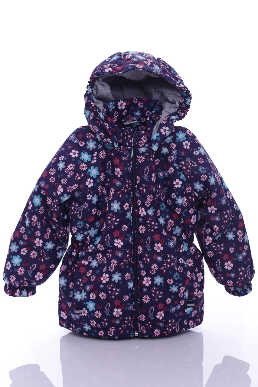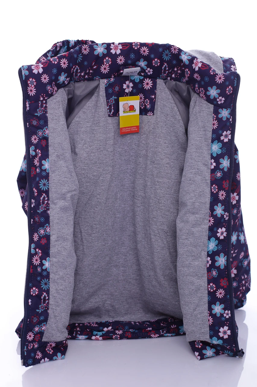 - Куртка для дівчинки на трикотажі Babykroha у квіточку темно синя