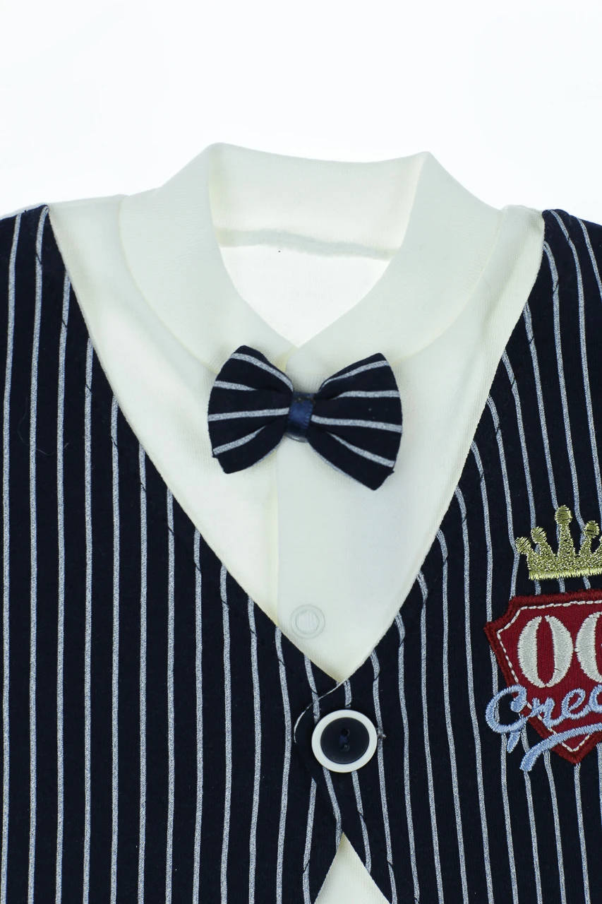 Прикрашений жилеткою-обманкою і метеликом.