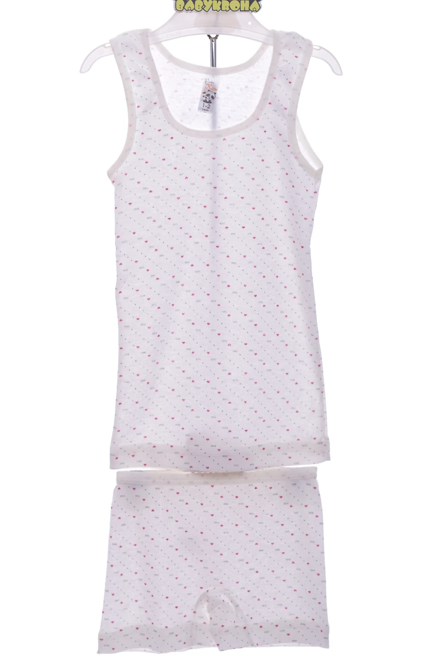 - Майка з трусами для дівчинки трикотажні серця молочний