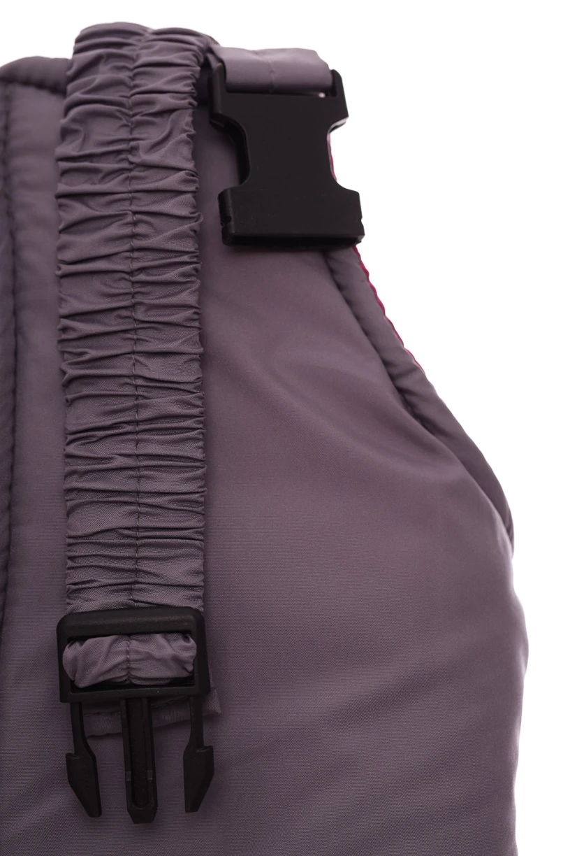 Напівкомбінезон на еластичних бретелях із застібкою на фастекси, завдяки чому бретелі можна відрегулювати.