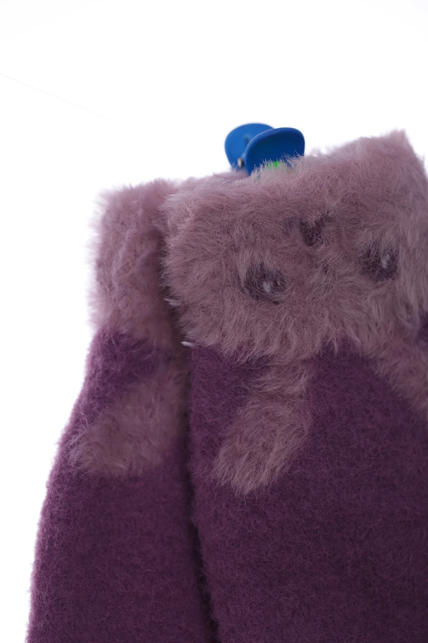 - Перчатки ангорові для дівчинки подвійна в'язка Зайчик фіолетовий