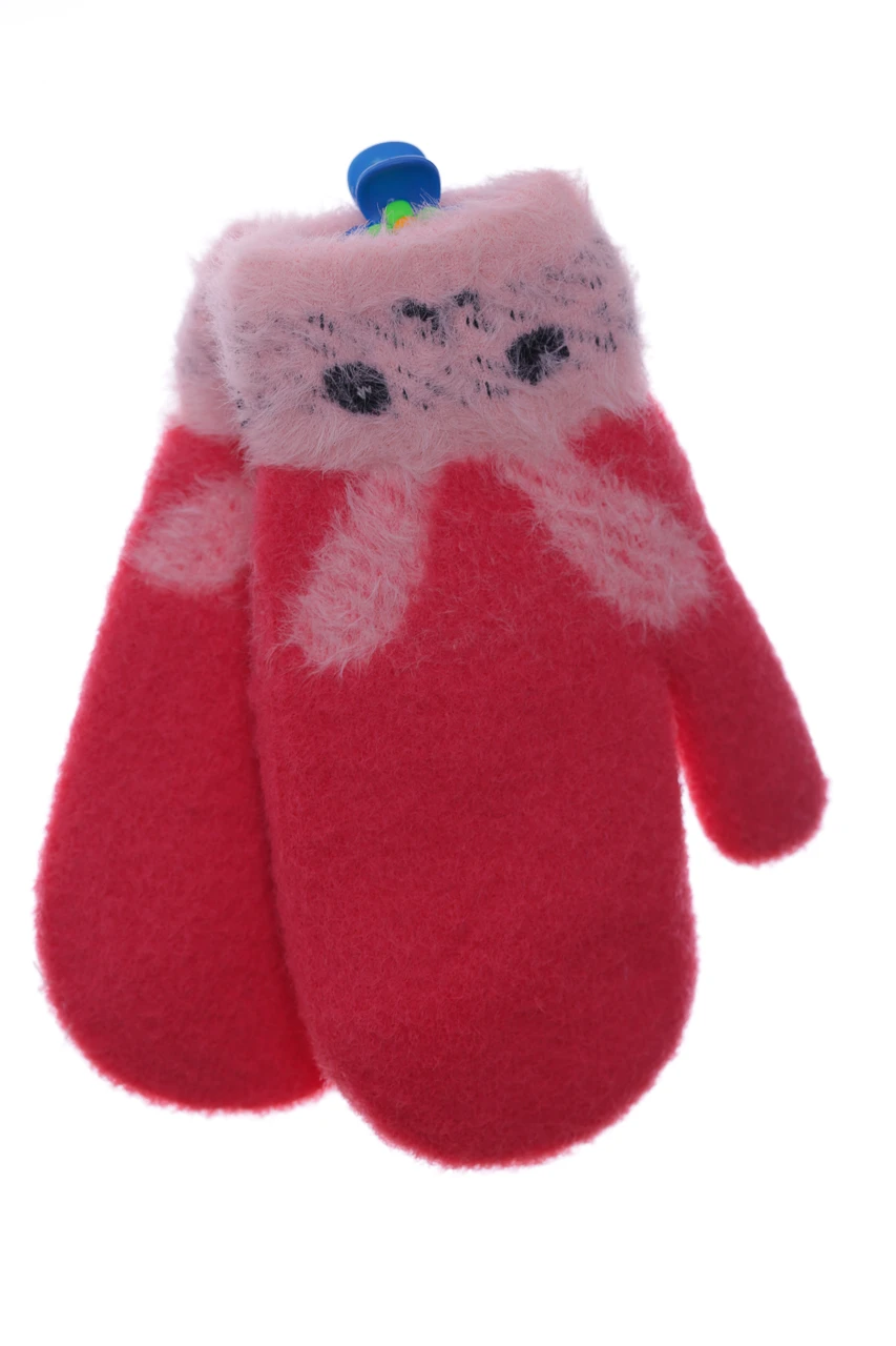 - Перчатки ангорові для дівчинки подвійна в'язка Зайчик малиново-кораловий