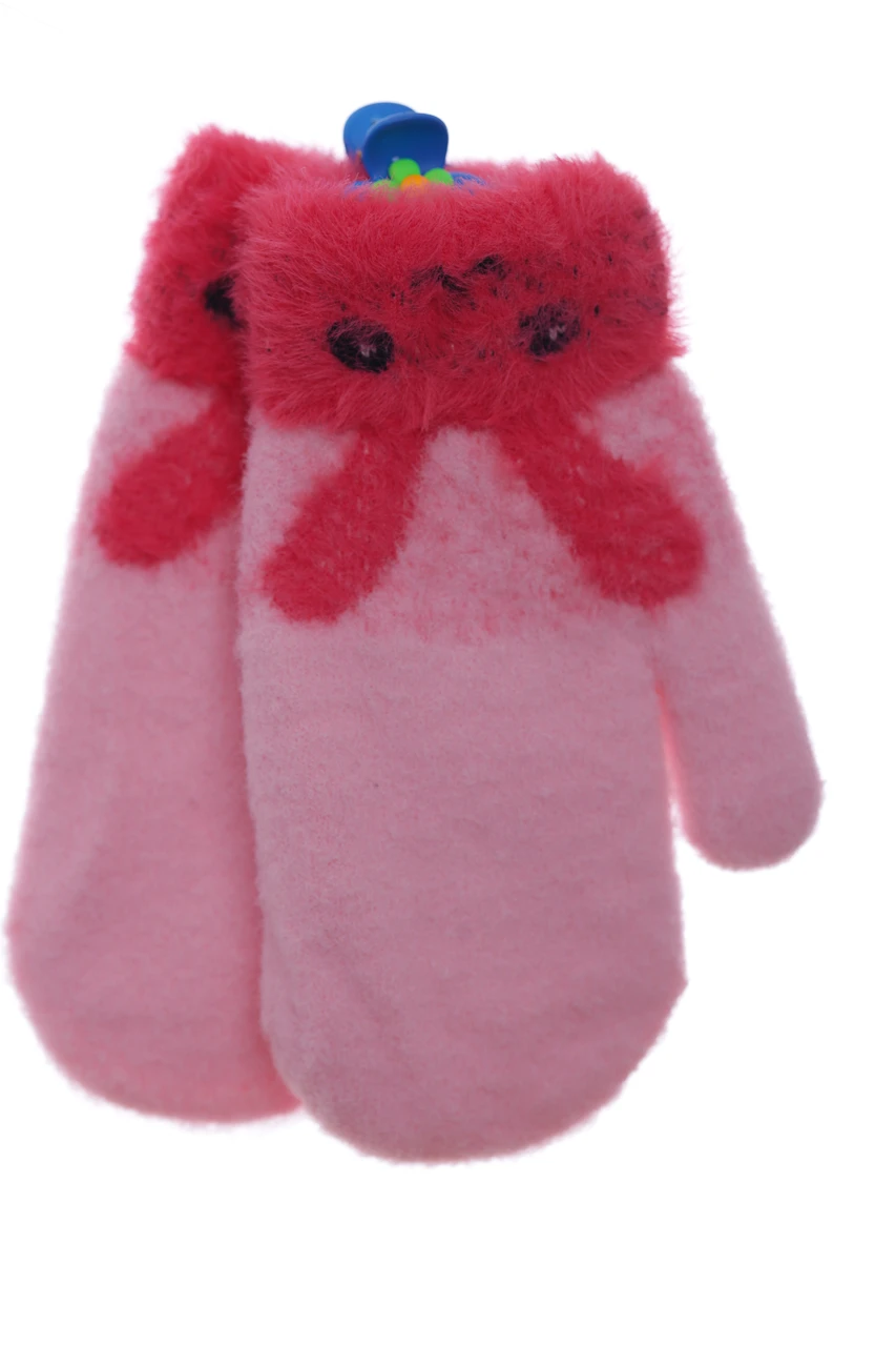 Рукавички з м'якої ангори для дівчинки. Милий принт зайчика, ніжний колір підійде під будь-який зимовий комплект.