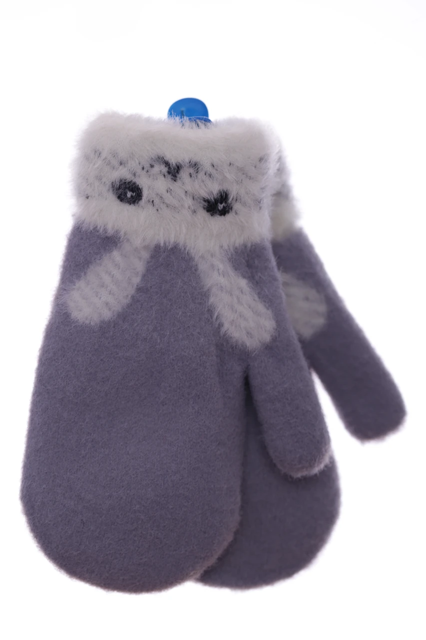 - Перчатки ангорові для хлопчика подвійне в'язання Зайчик сірі