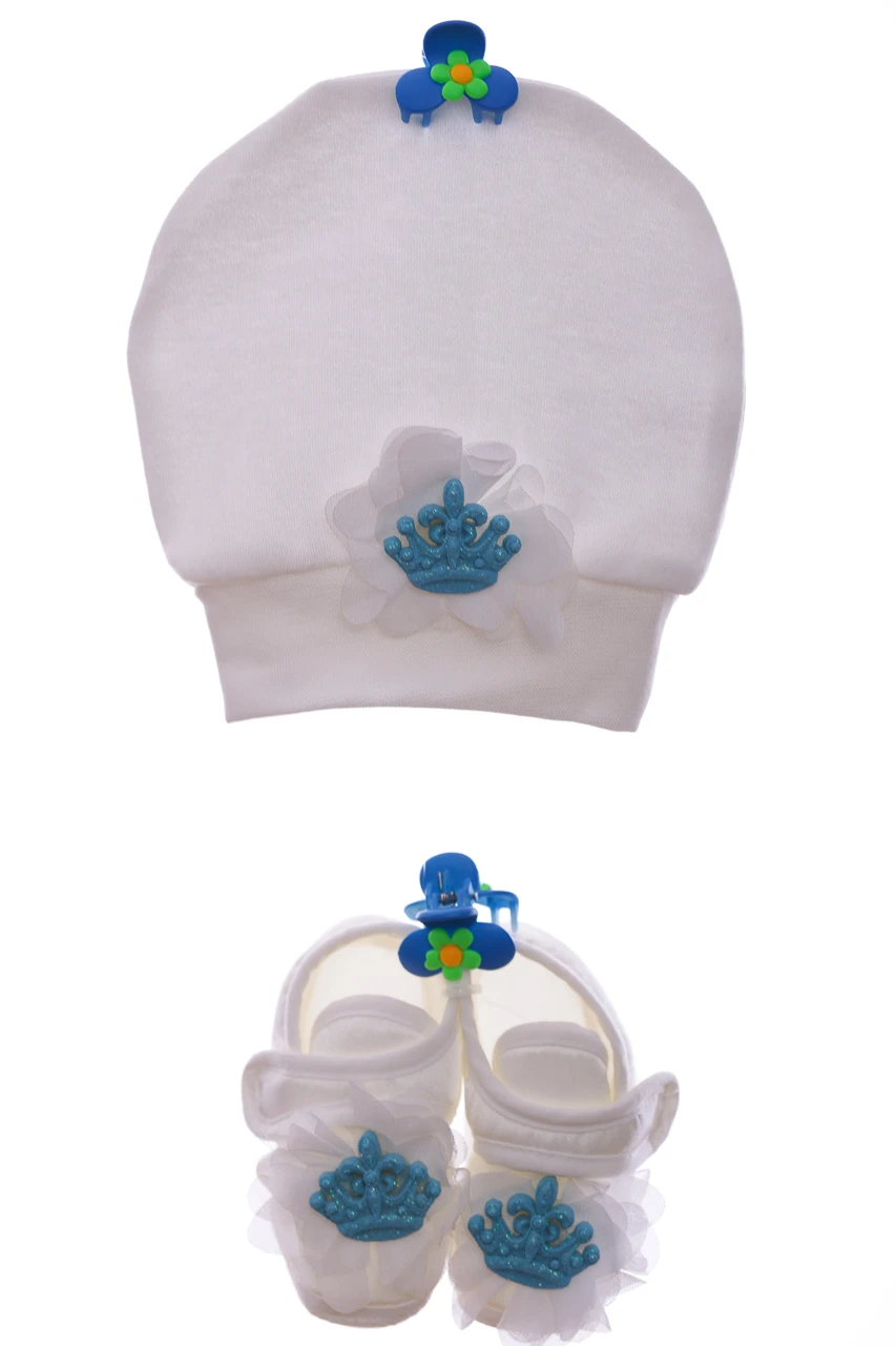 Милий набір для новонародженої дитини. У наборі-трикотажні пінетки на липучці та шапочка в тон. Теплі та приємні на дотик. Підійдуть на подарунок близьким, які мають дітей