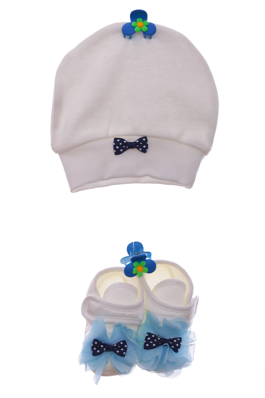 Милий набір для новонародженого хлопчика. У наборі-трикотажні пінетки на липучці і шапочка в тон. Теплі та приємні на дотик. Підійдуть на подарунок близьким, які мають дітей