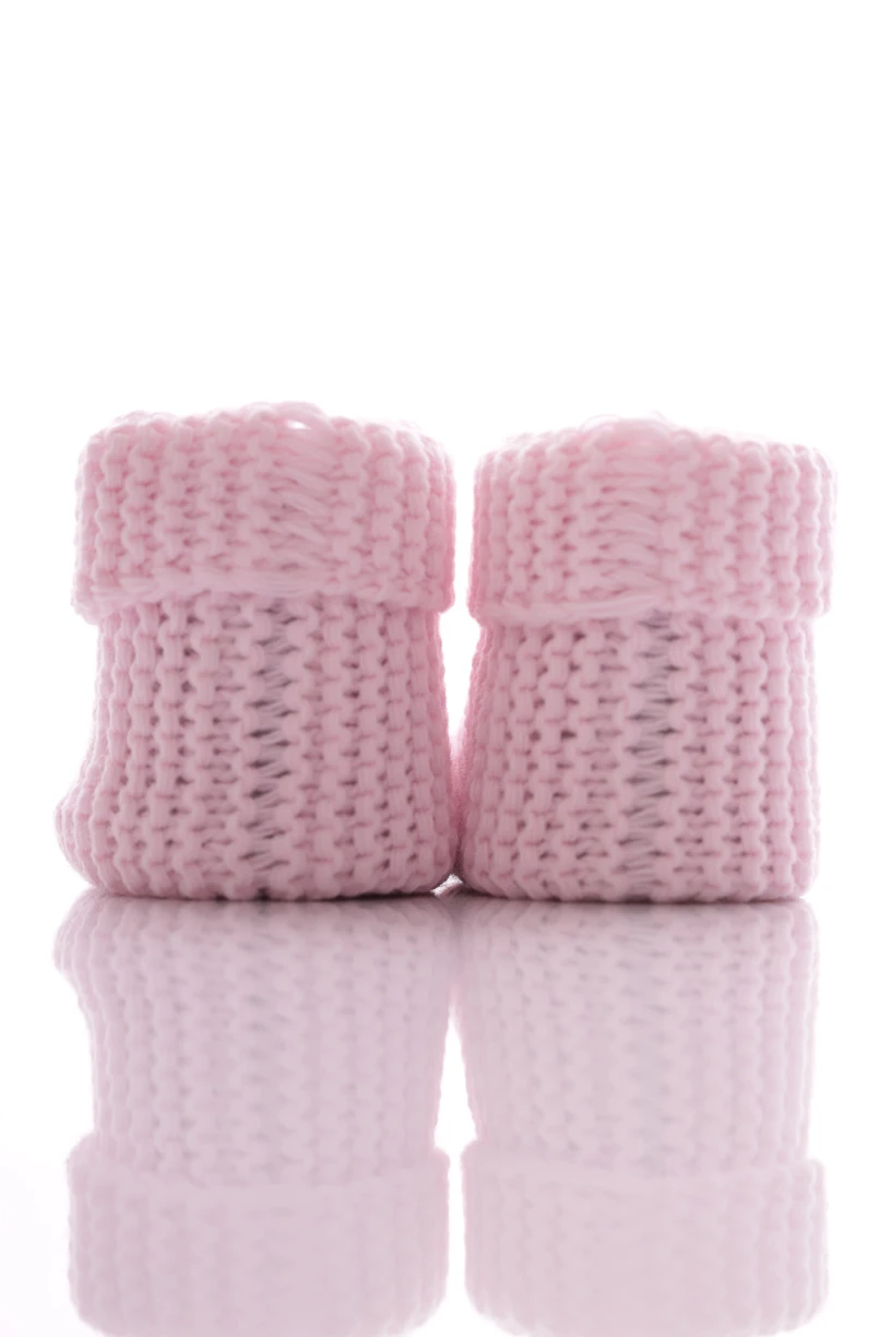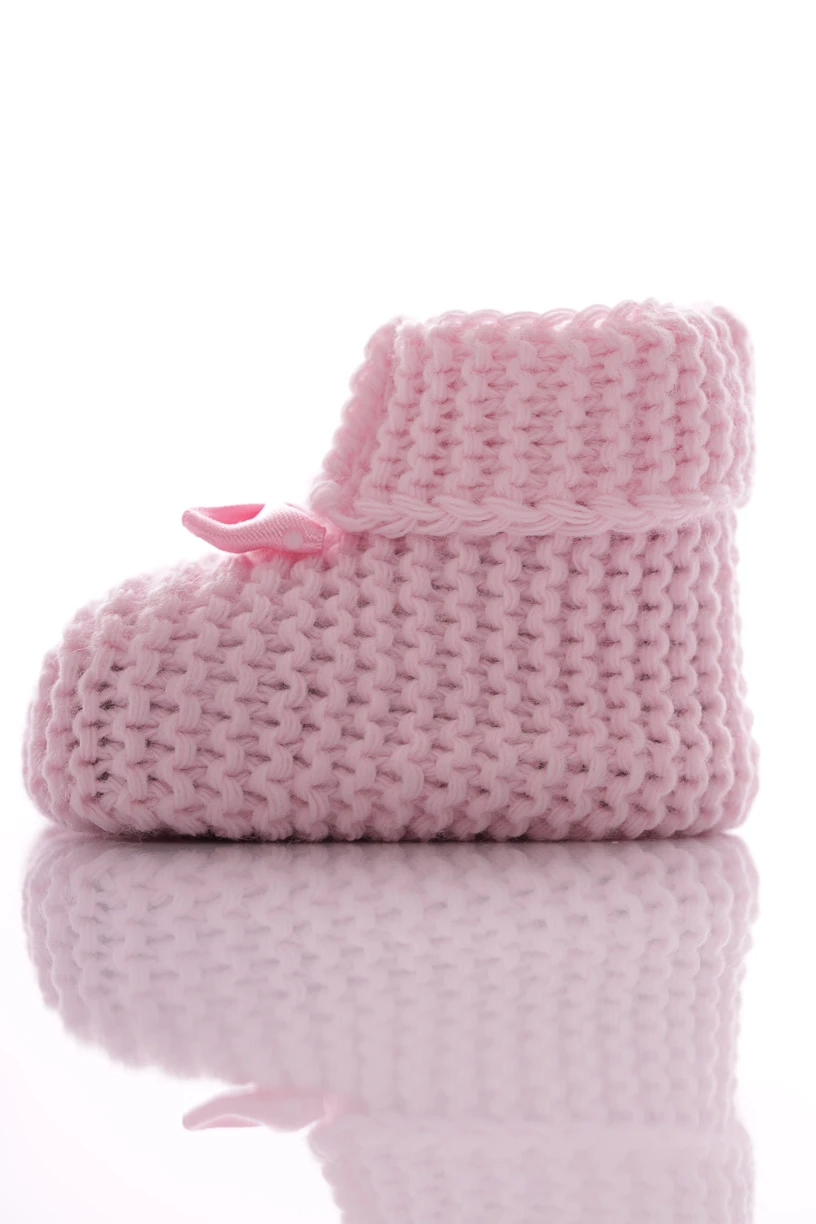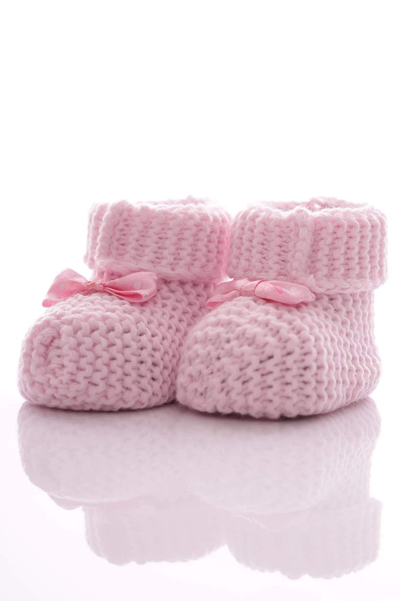 - Пінетки в'язані для новонародженої дівчинки з рожевим бантиком 9,5*6,5см