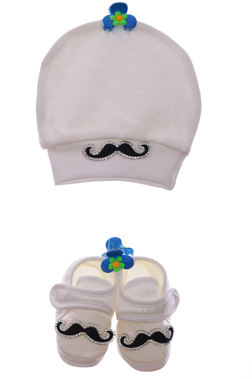 Пінетки з шапкою для хлопчика трикотажні джентльмен білий
