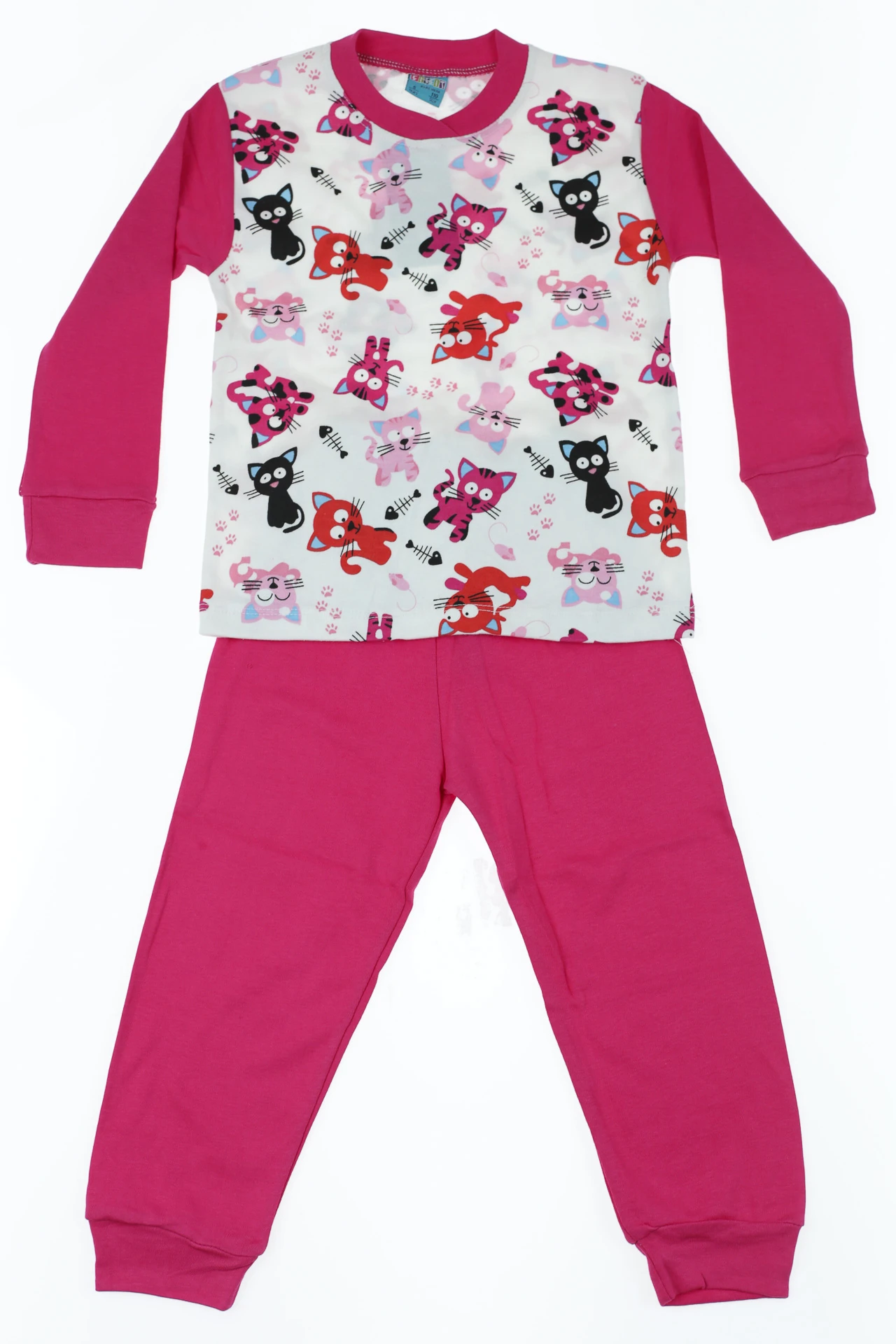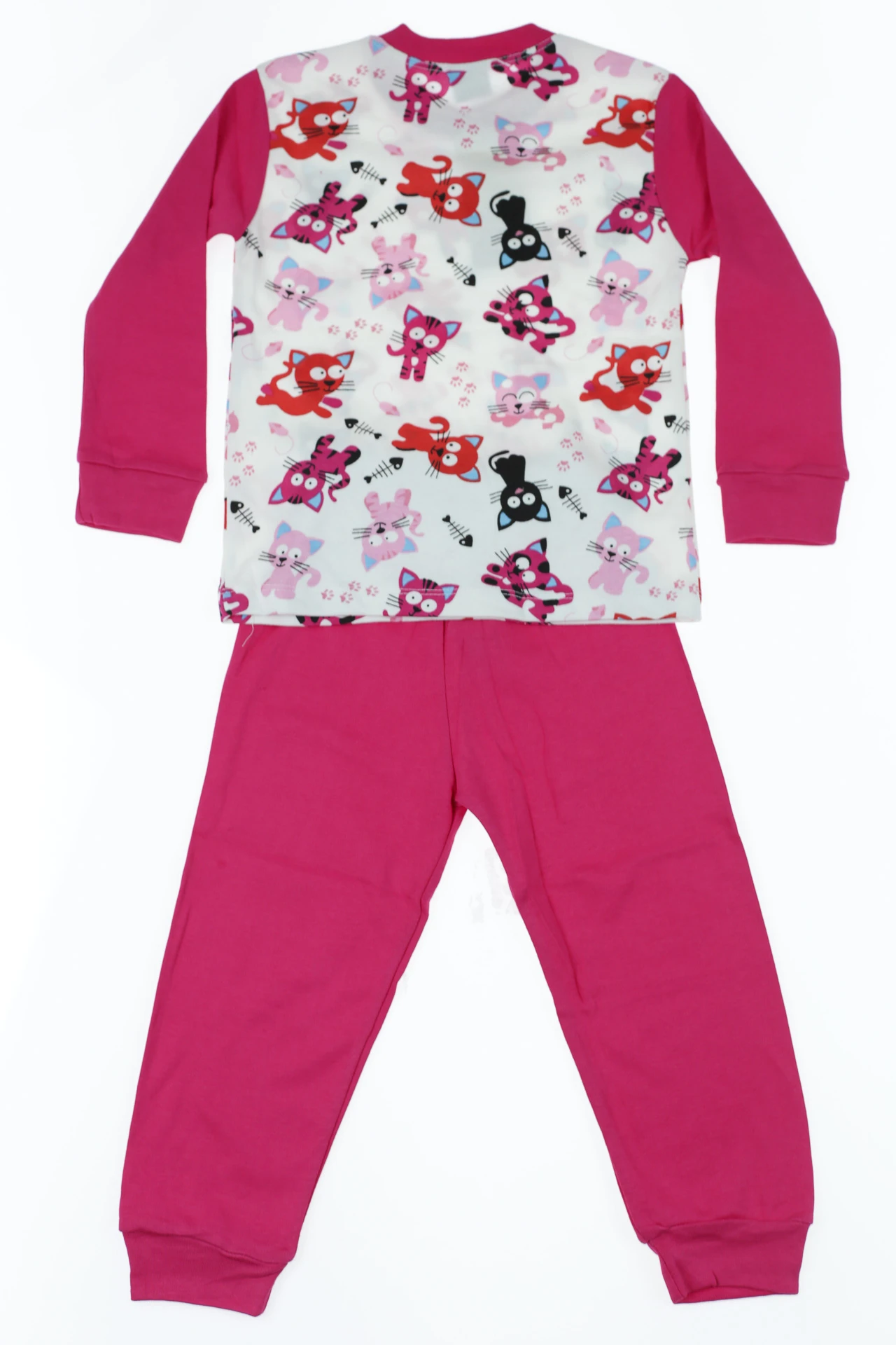 Піжама для дівчинки з довгим рукавом інтерлок з котиками малинова