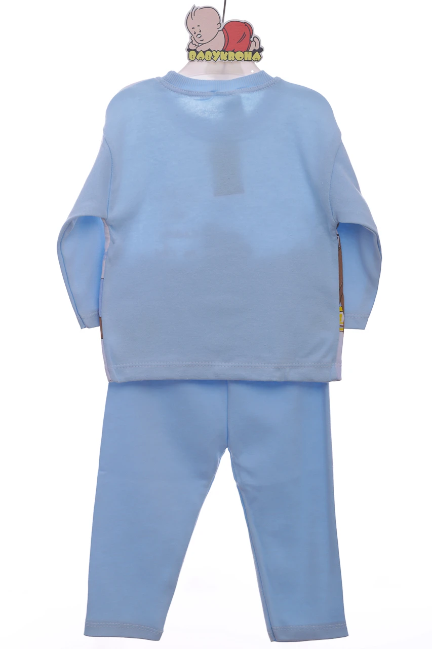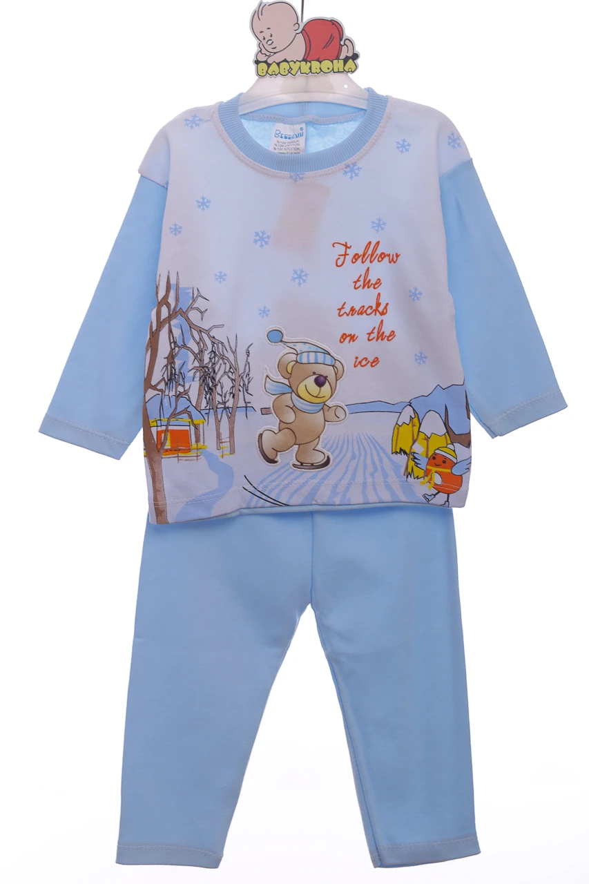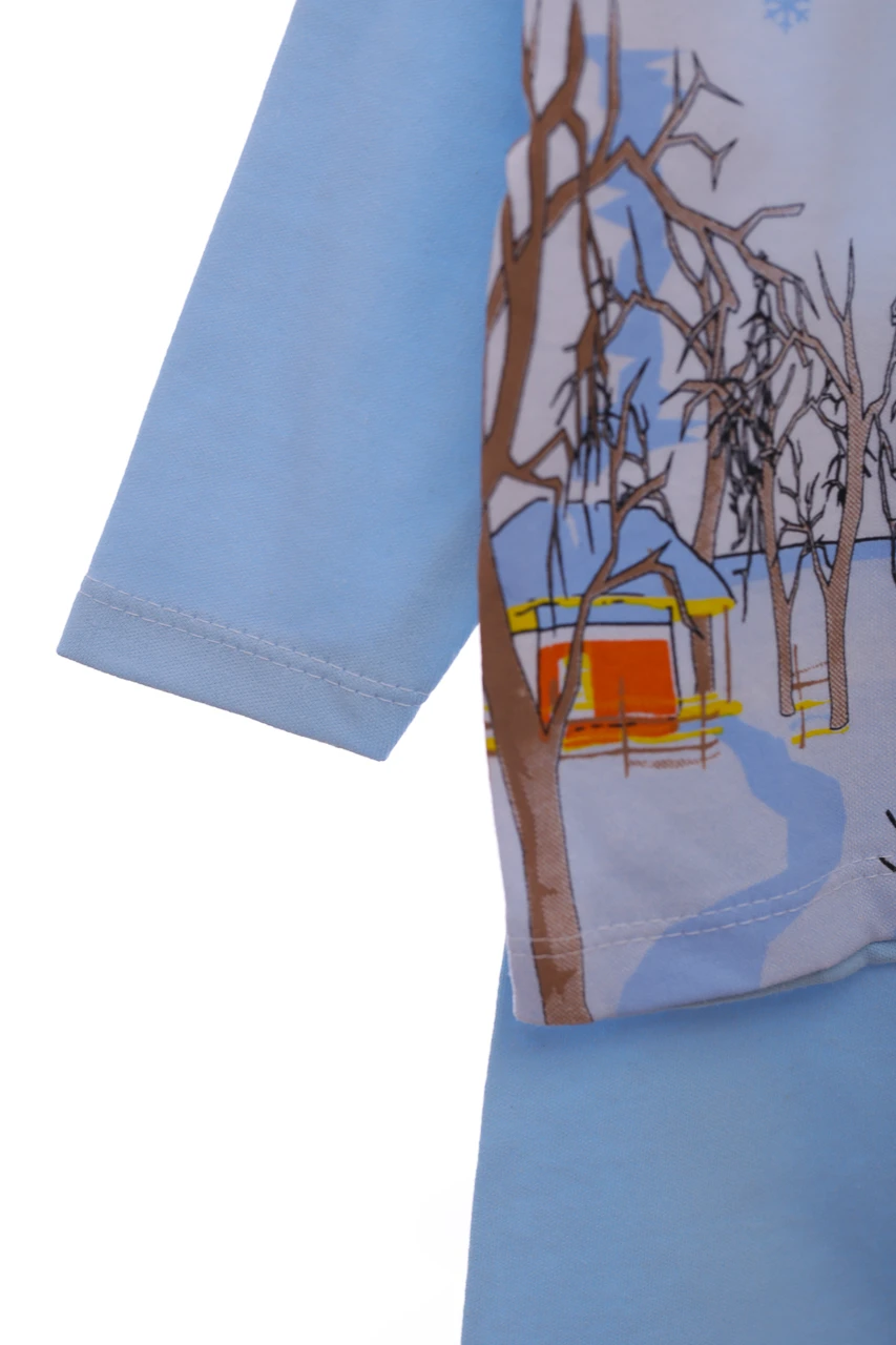 - Піжама з довгим рукавом для хлопчика трикотажна сніжинка блакитний