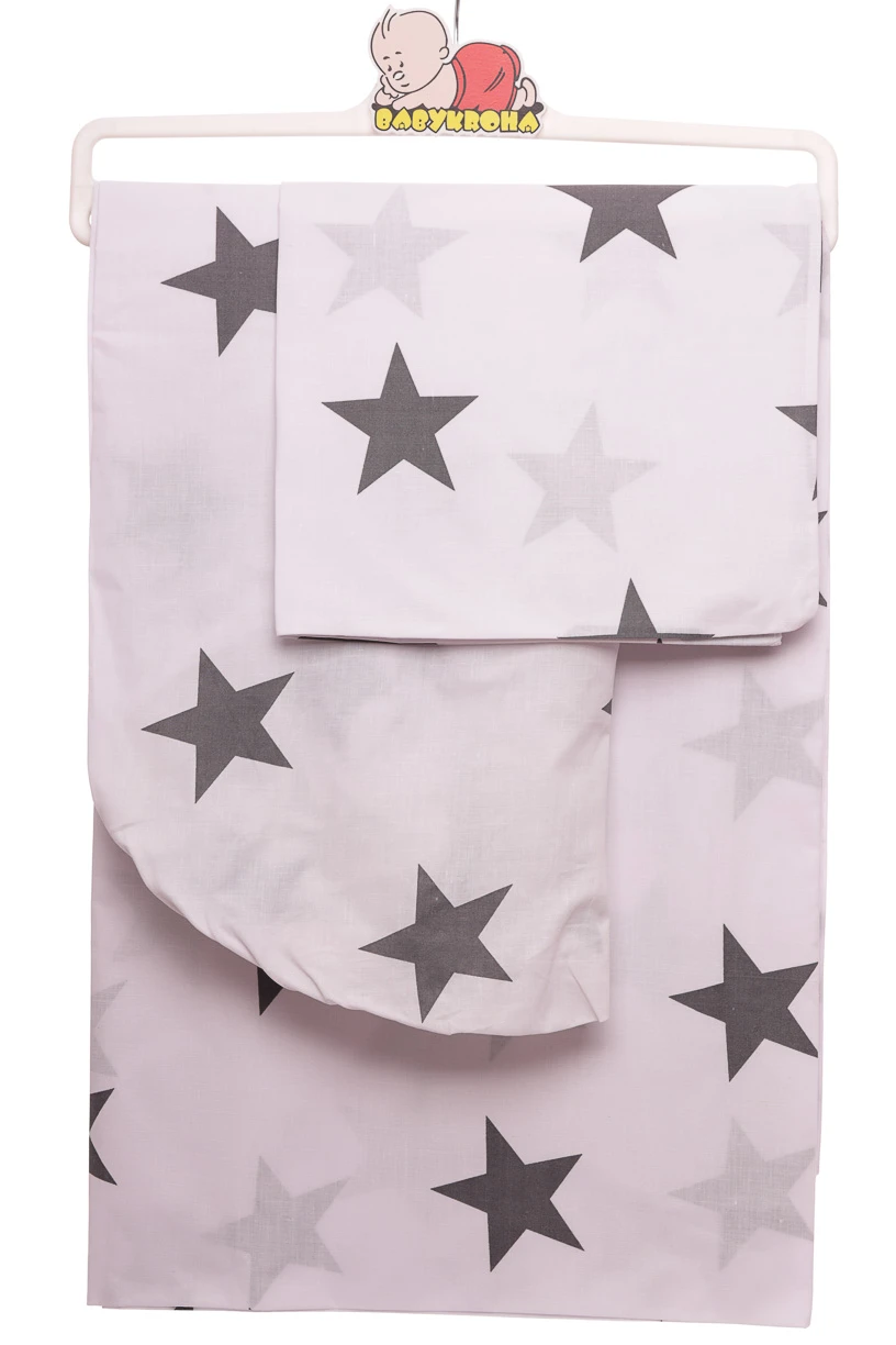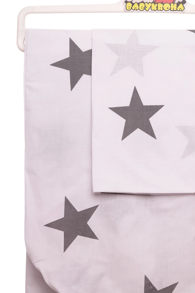 - Постільна бавовна на гумці із зірками 130*100 біла