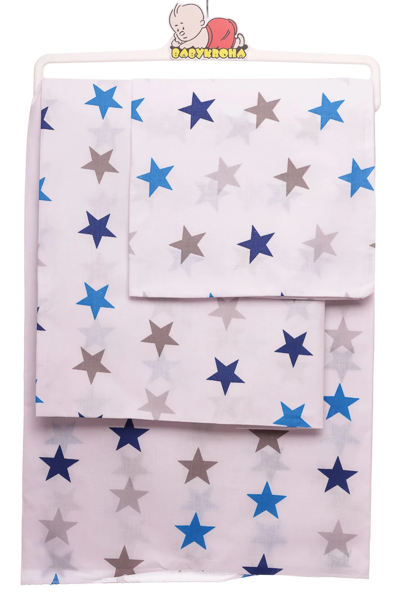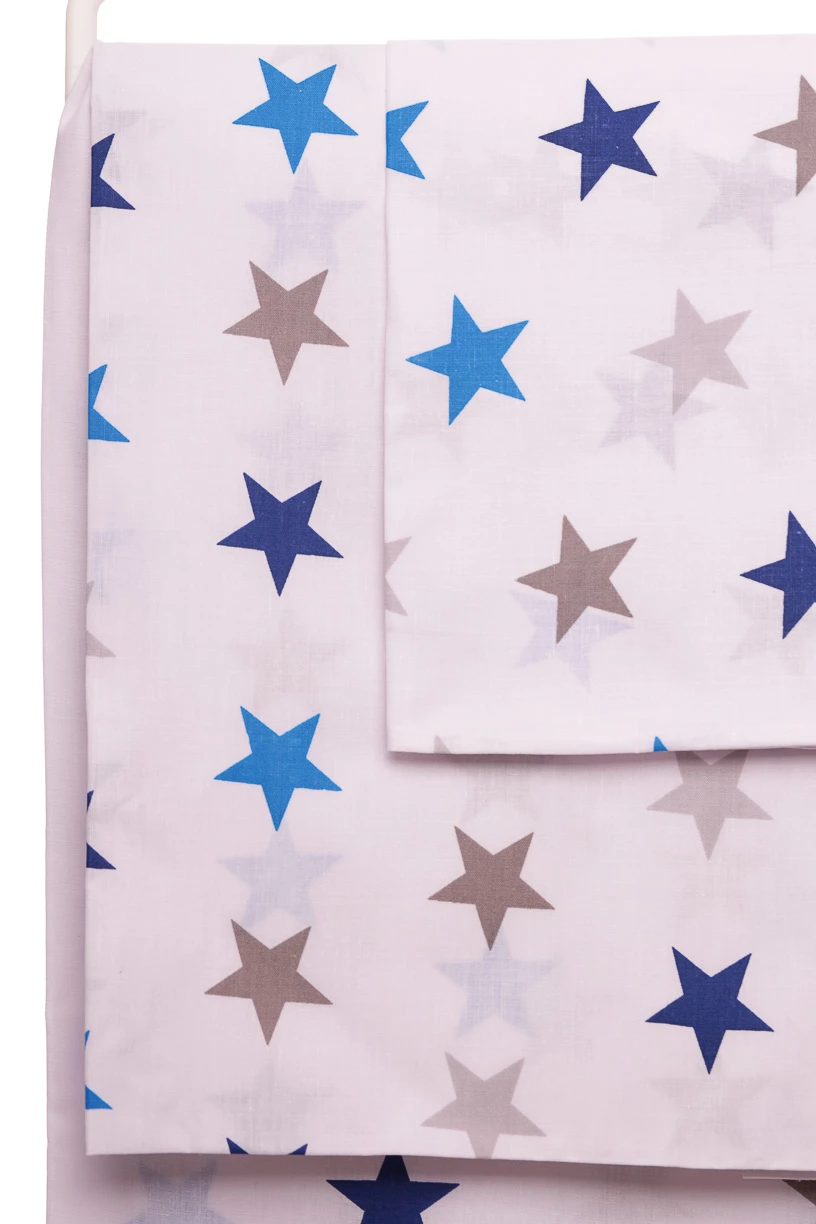 - Постільна білизна бавовна в синьо-сіру зірочку 130*100 біла