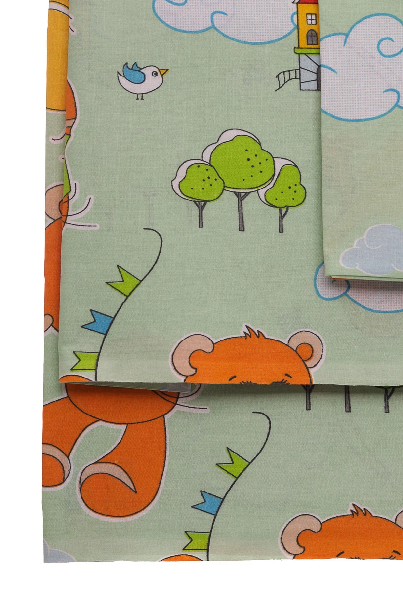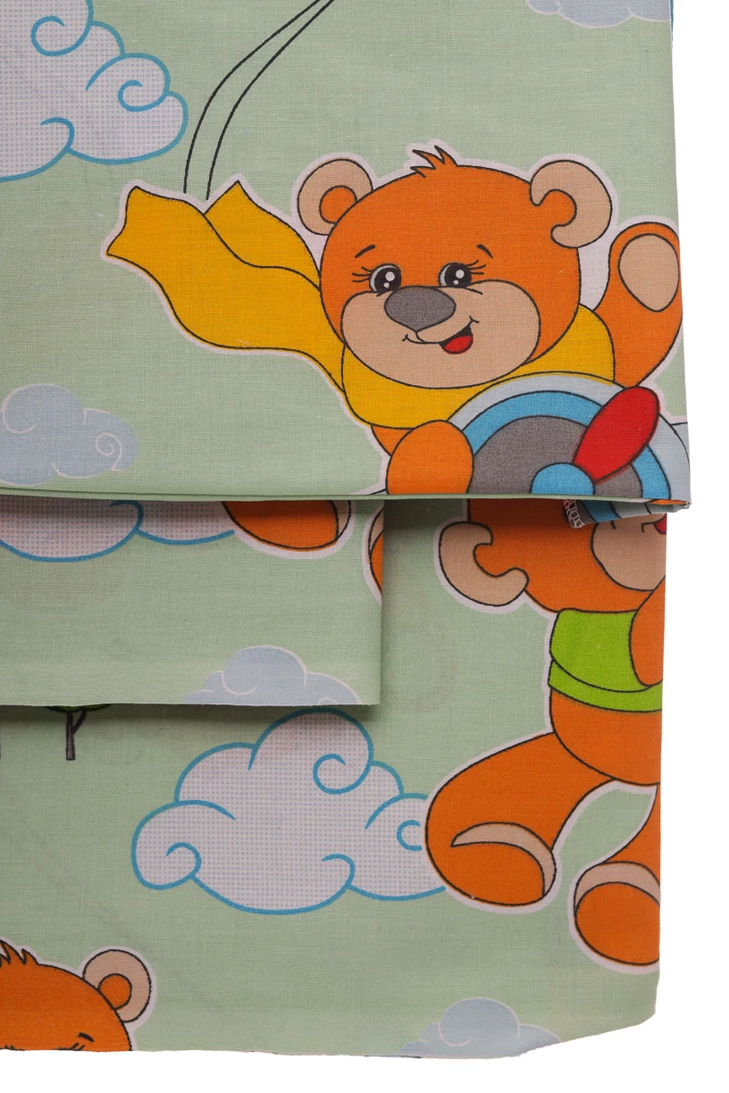 Постільна білизна бавовна ведмедик на літачку 135*100 см світло-зелена