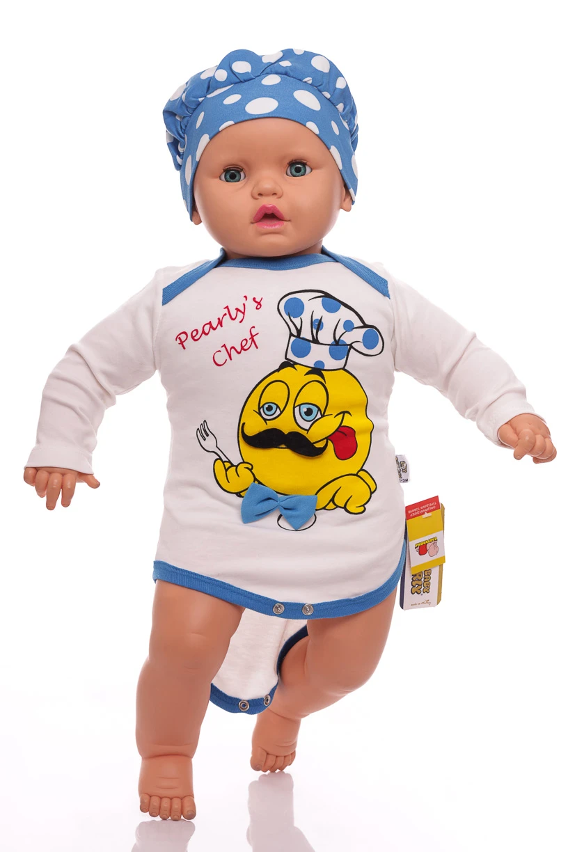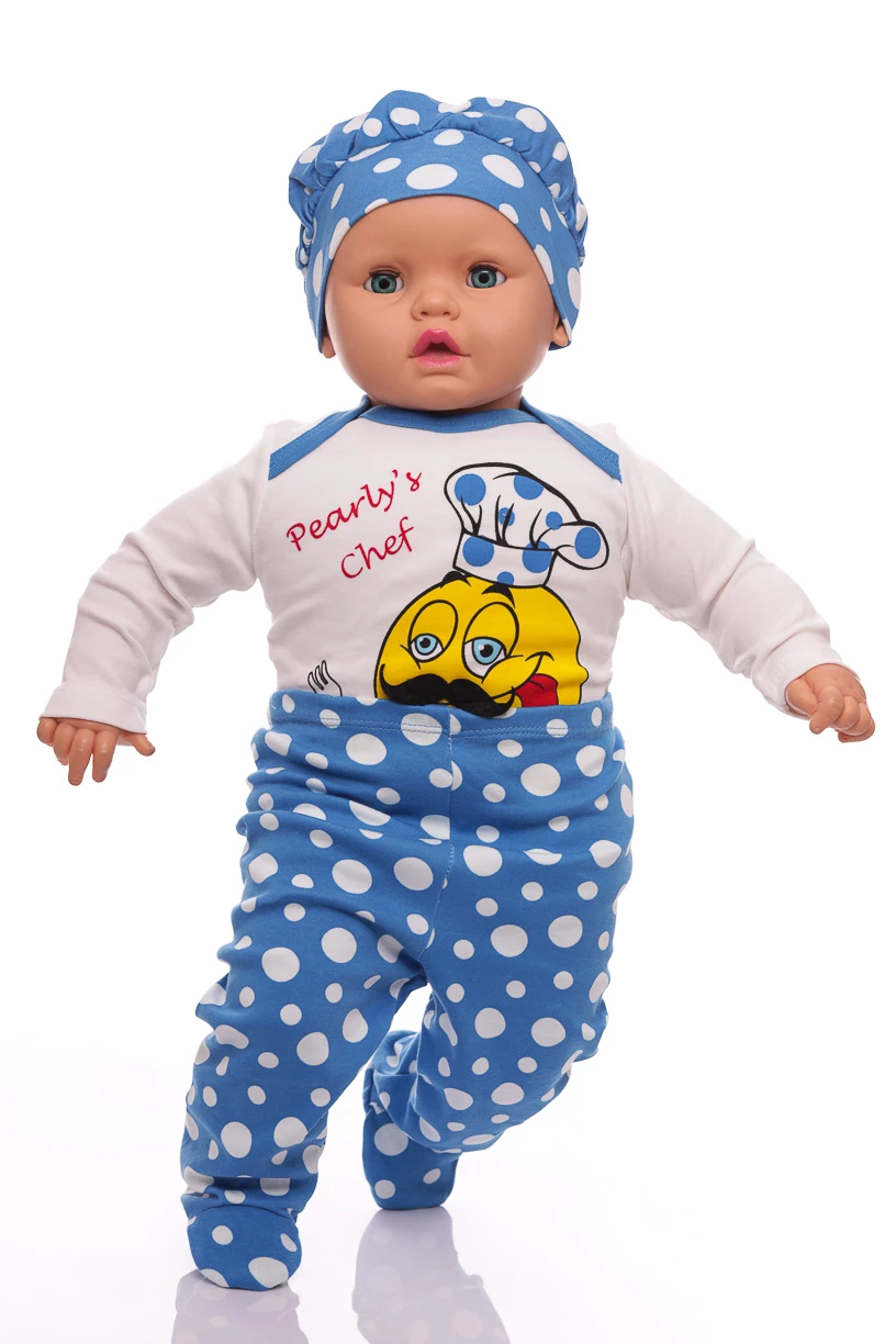 - Повзунки, боді та шапка для хлопчика трикотажні Chef блакитні
