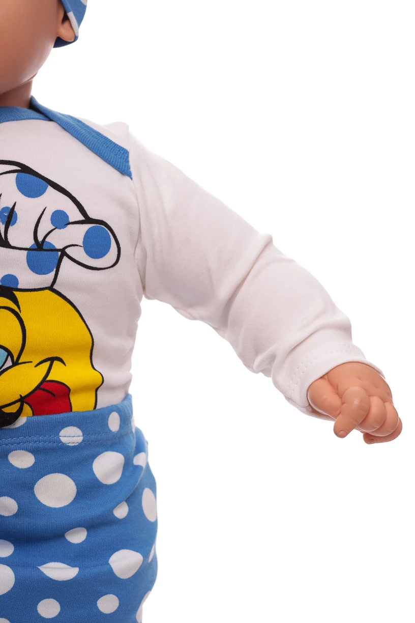У наборі: боді з довгим рукавом, повзуни на гумці і шапочка.
