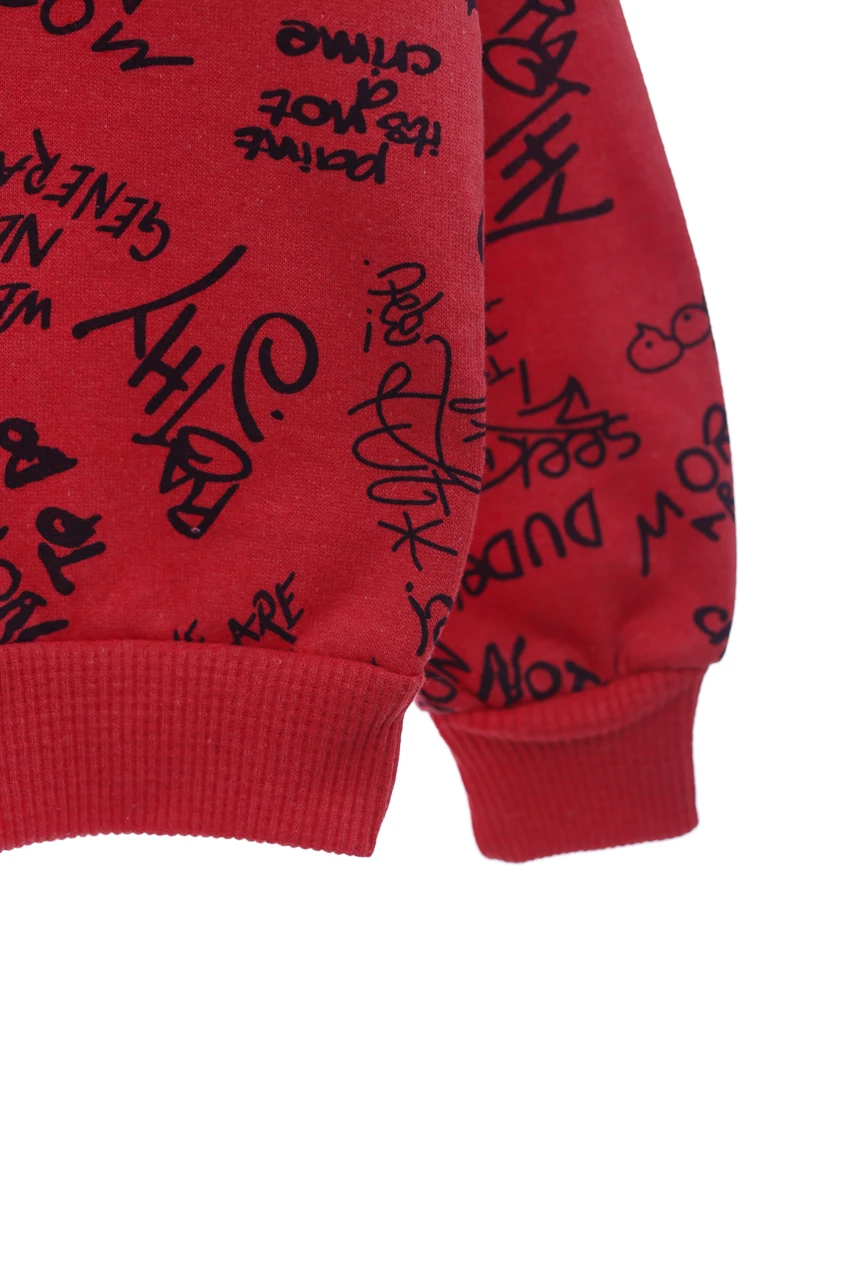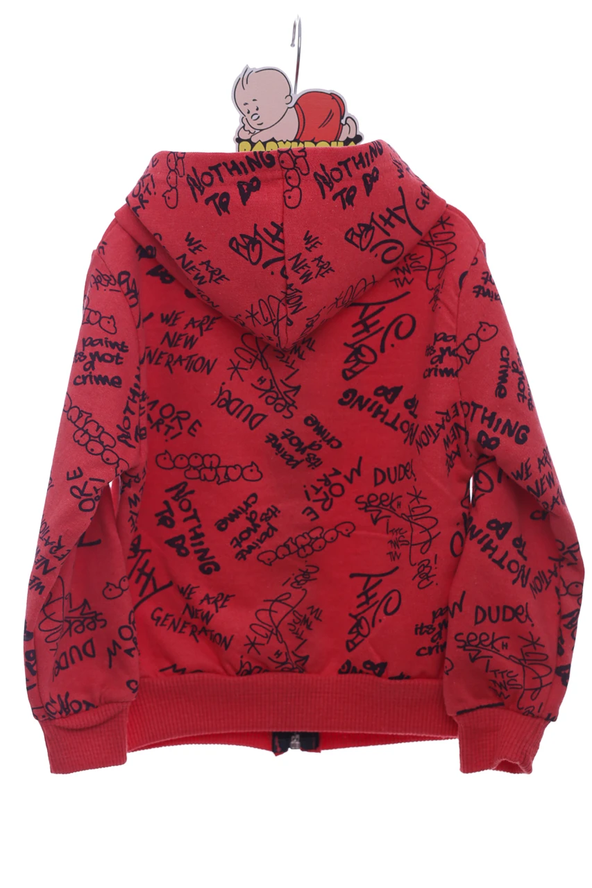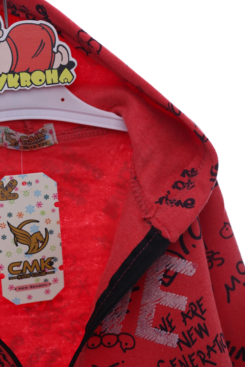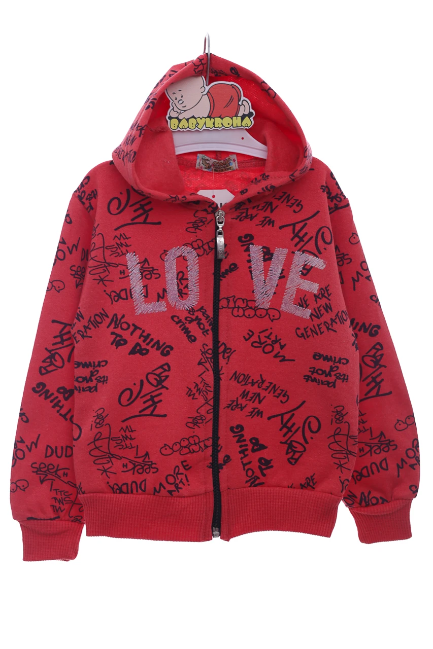 Трикотажная кофта на флисе для девочки. Есть капюшон. Застегивается на молнию. На рукавах резинки. Свободного кроя изделие, с ярким принтом
