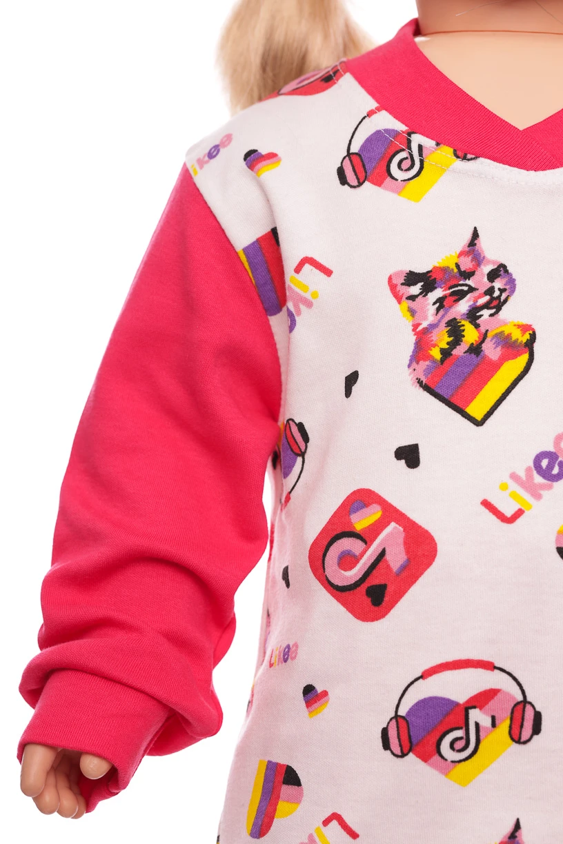 - Пижама для девочки с длинным рукавом интерлок Likee розовая