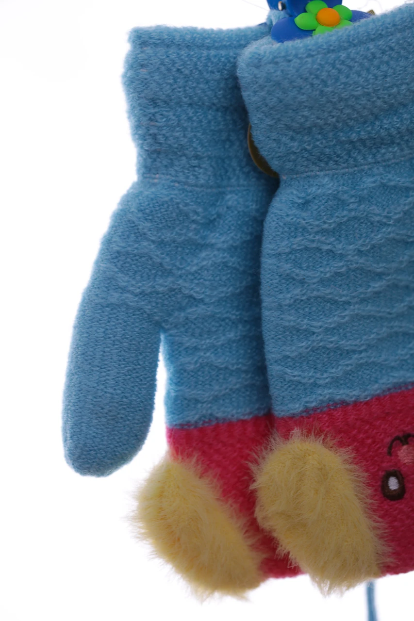 - Рукавички вязанные на махре Ушки бирюзовые