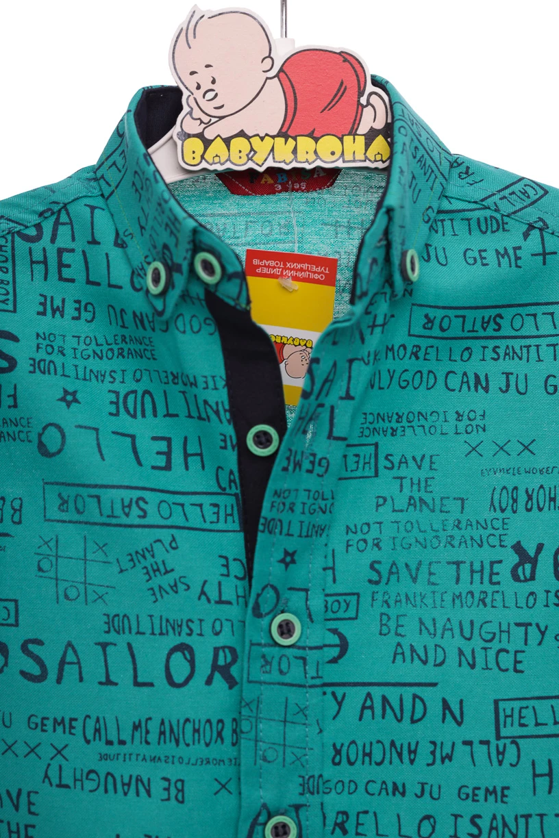 Сорочка для хлопчика, з коротким рукавом, застібається на гудзики, комір добре тримає форму,