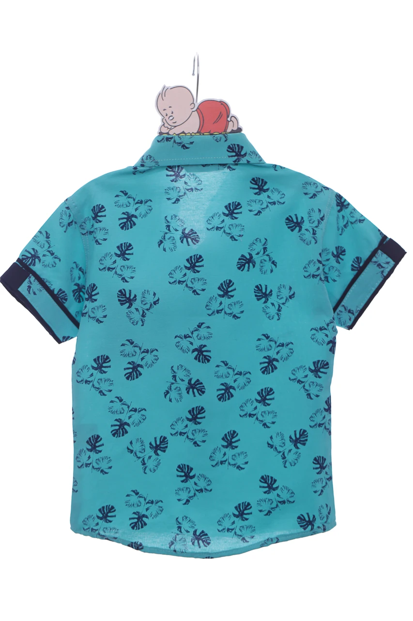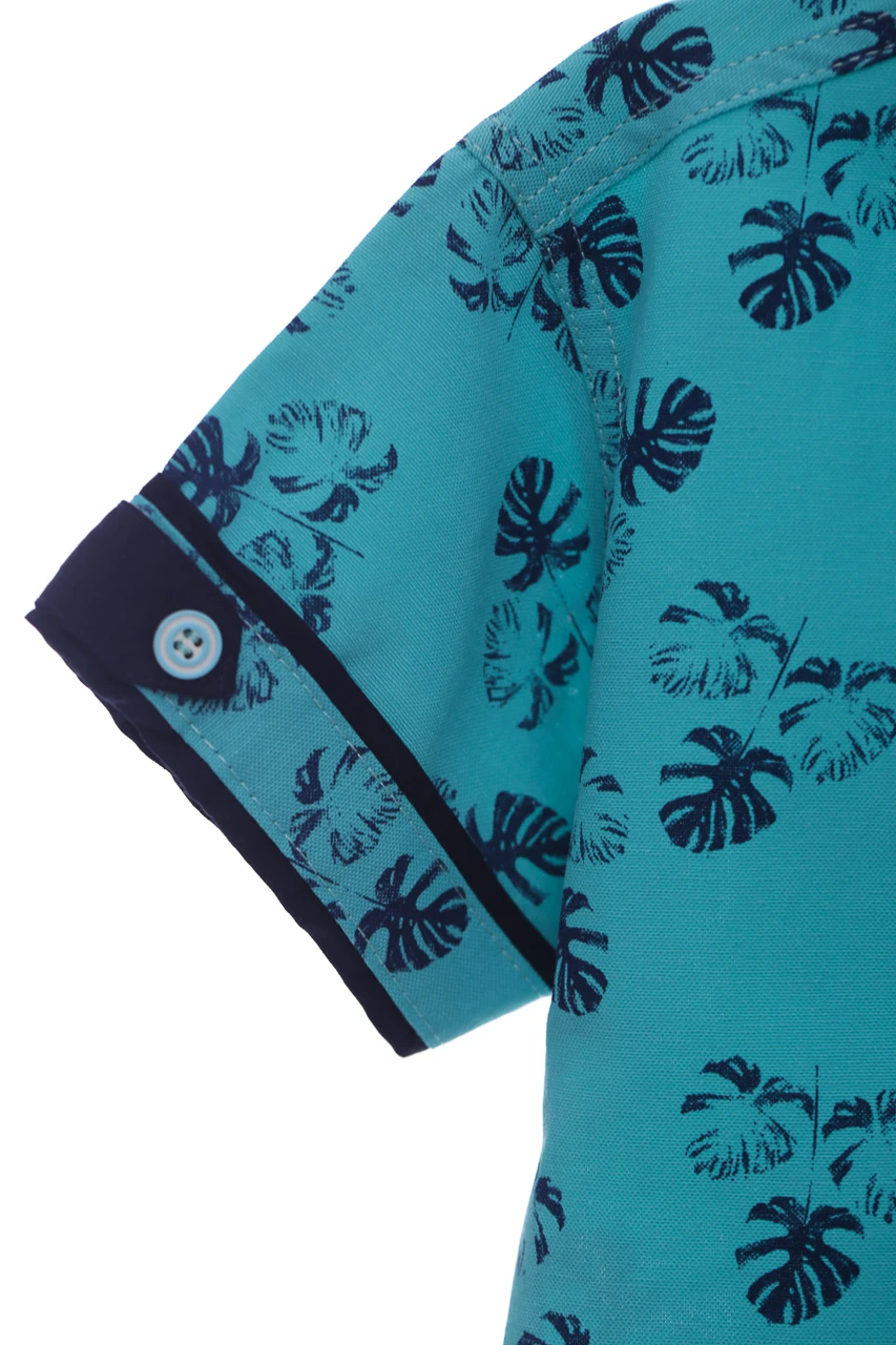 - Сорочка з коротким рукавом для хлопчика бавовняна з бірюзовою листочками