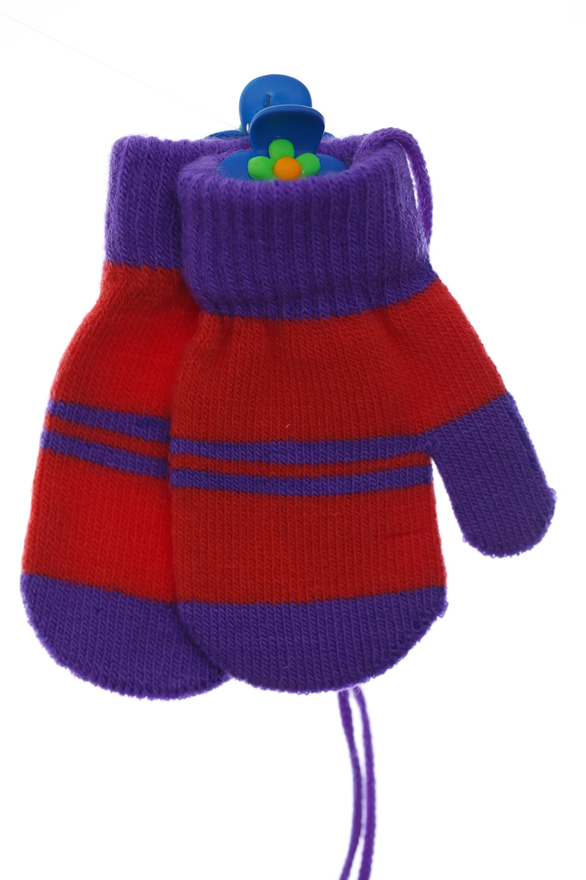 Рукавички з м'якої в'язки для малюка. Милий принт, ніжний колір підійде до будь-якого зимового комплекту. З'єднані шнурочком між собою