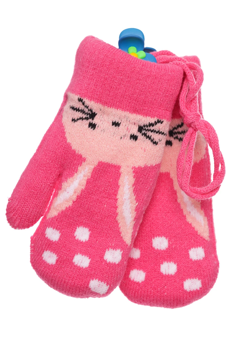 - Рукавички в'язка на траві з зайчиком у горох рожевий