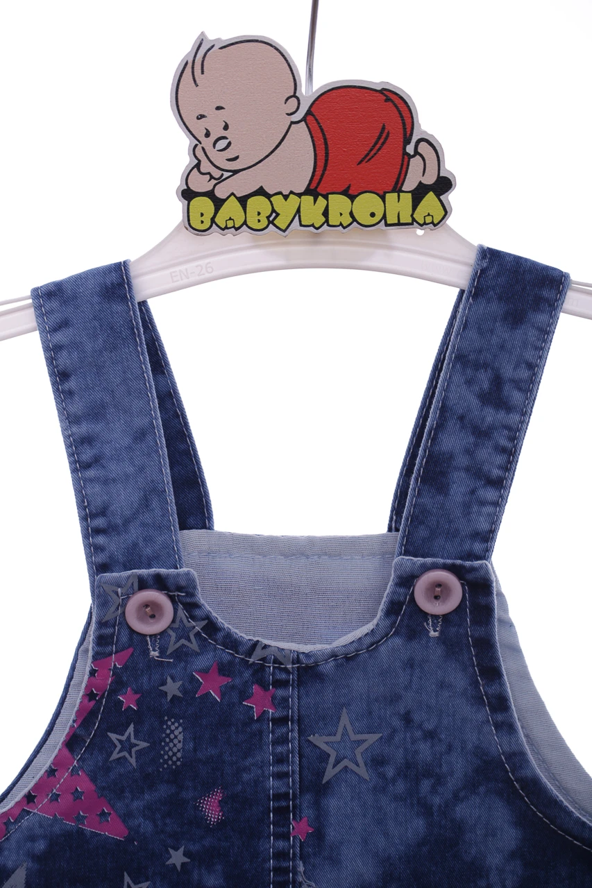 Джинсовий сарафан на дівчинку. Виконаний із м'якого синього котону. Застібається на гудзики. Сарафан з принтом рожевих зірочок