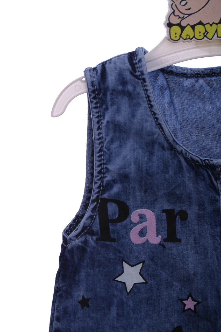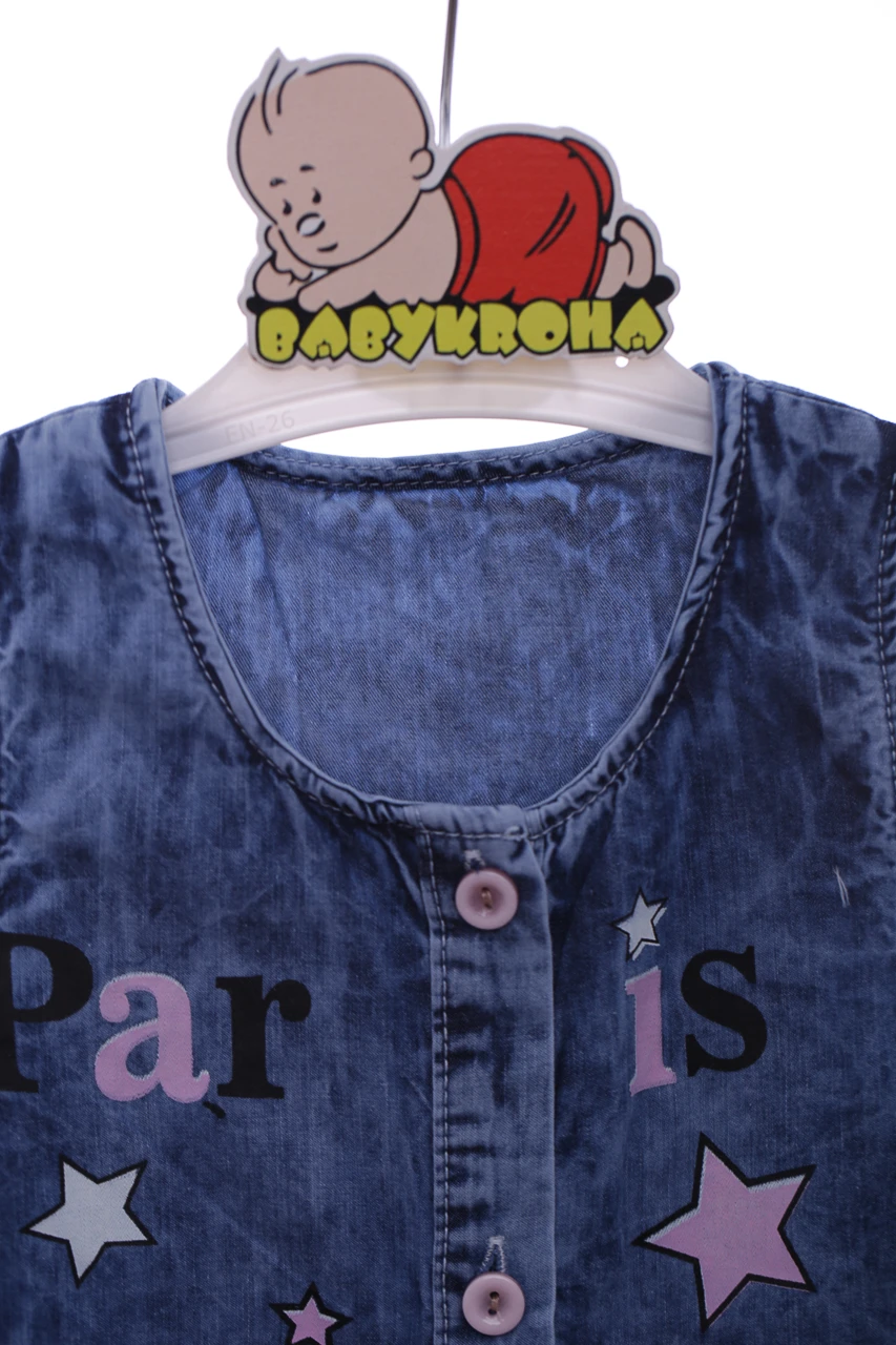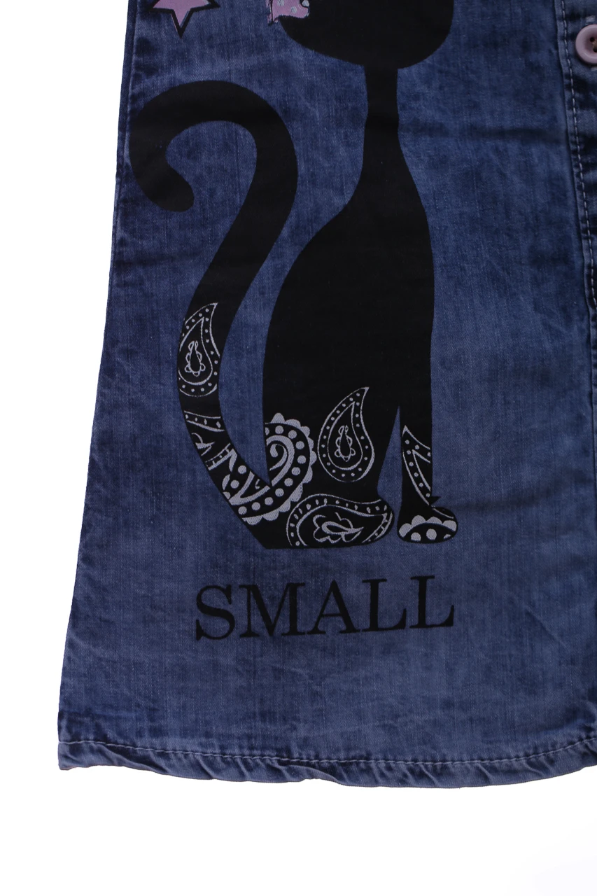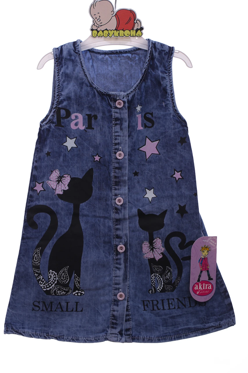 Джинсовий сарафан на дівчинку. Виконаний із м'якого синього котону. Застібається на гудзики по всій довжині виробу. Сарафан із принтом чорних кішок