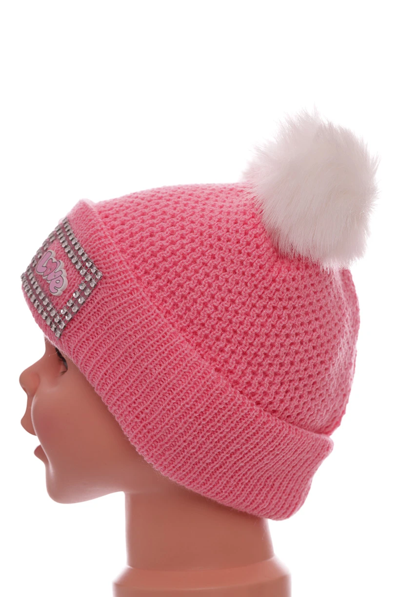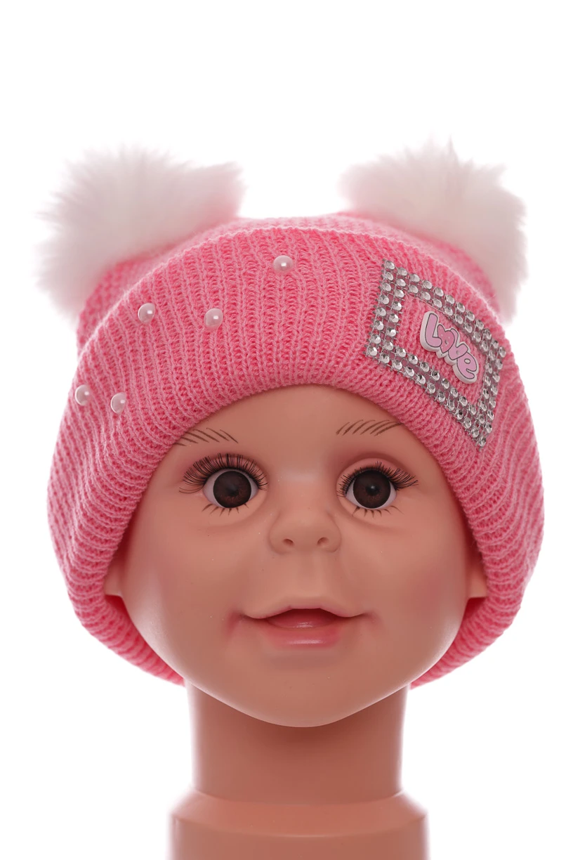 - Шапка для дівчинки подвійна в'язка на флісі Love рожева