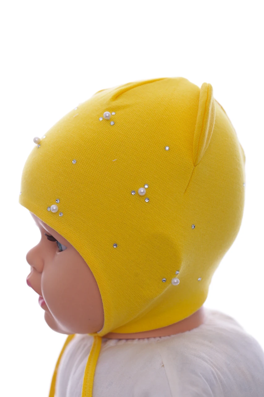 - Шапка для дівчинки подвійний трикотаж Стразики жовта