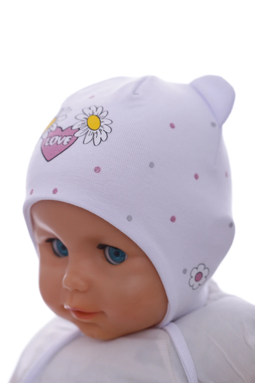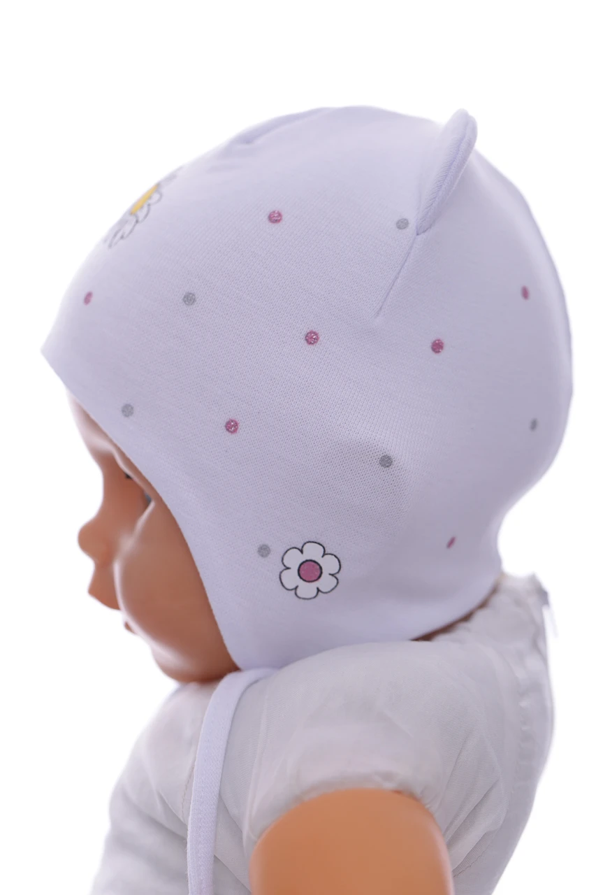 - Шапка для дівчинки подвійний трикотаж з білим ромашкою