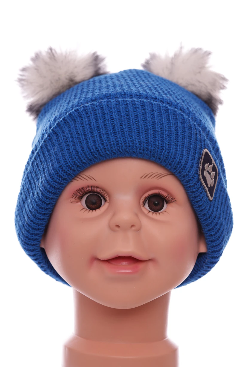 - Шапка для хлопчика подвійна в'язка на флісі Лапка синя